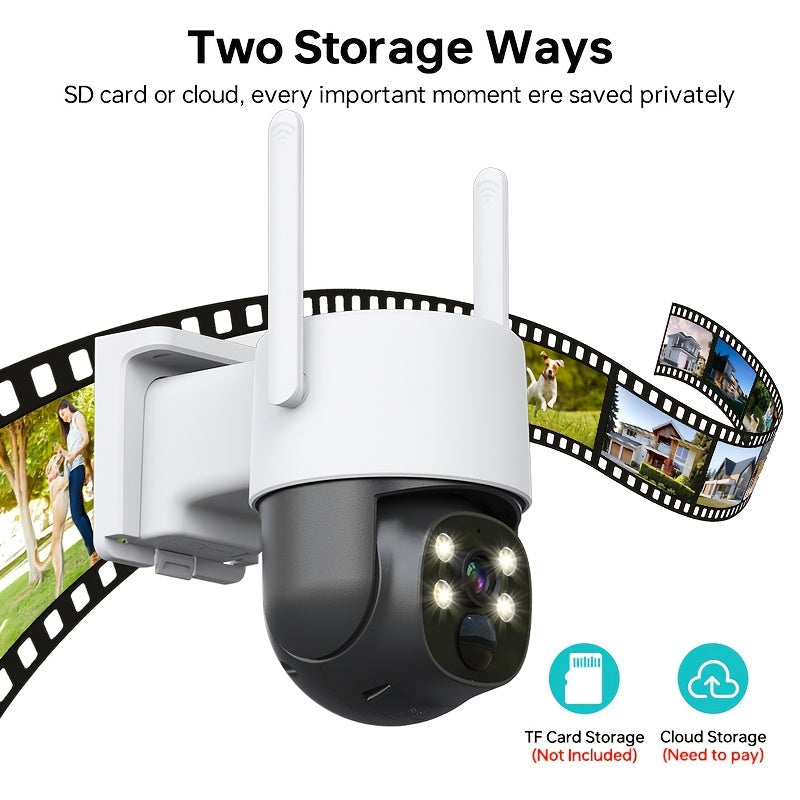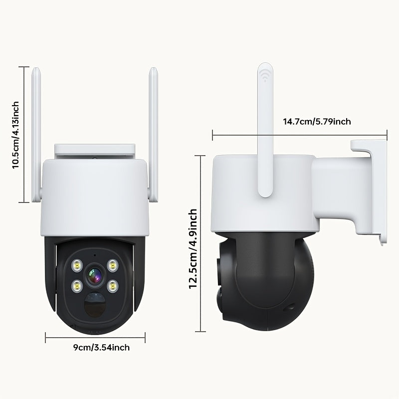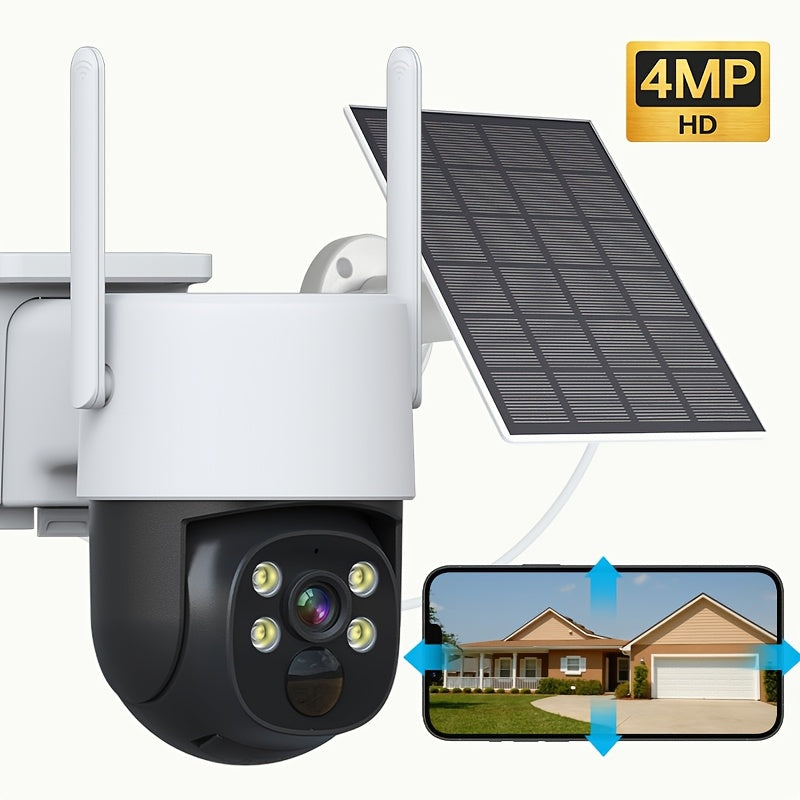 Ulanmagan 4MP tashqi xavfsizlik kamerası, kechqurun ko‘rish, harakatni aniqlash va pan-tilt bilan