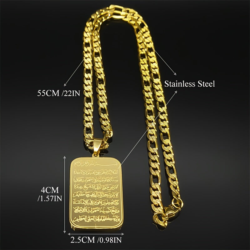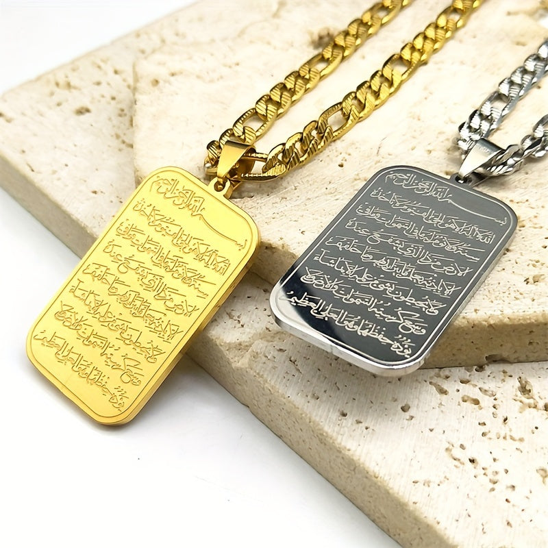 Islomiy zanglamas po'latdan yasalgan pendant marjon, Qur'on o'yma, uniseks qabil dizayni, kundalik kiyish va Ramazon bayramlari uchun mukammal - An'anaviy O'rta Sharq zargarligi NZZZ929