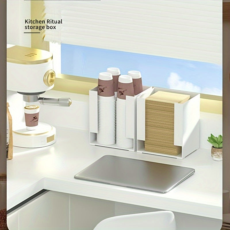 Yaponcha uslubdagi plastik saqlash tashkilotchisi - qulayliklar uchun ko'p funksiyali dispenser, bir martalik stakanlar, to'qimalar, pampers, ichki kiyimlar va yuz to'qimalari uchun - oshxona va kafe foydalanishi uchun mukammal