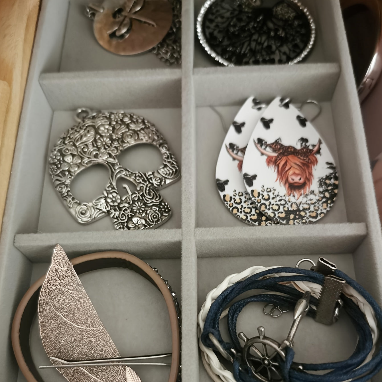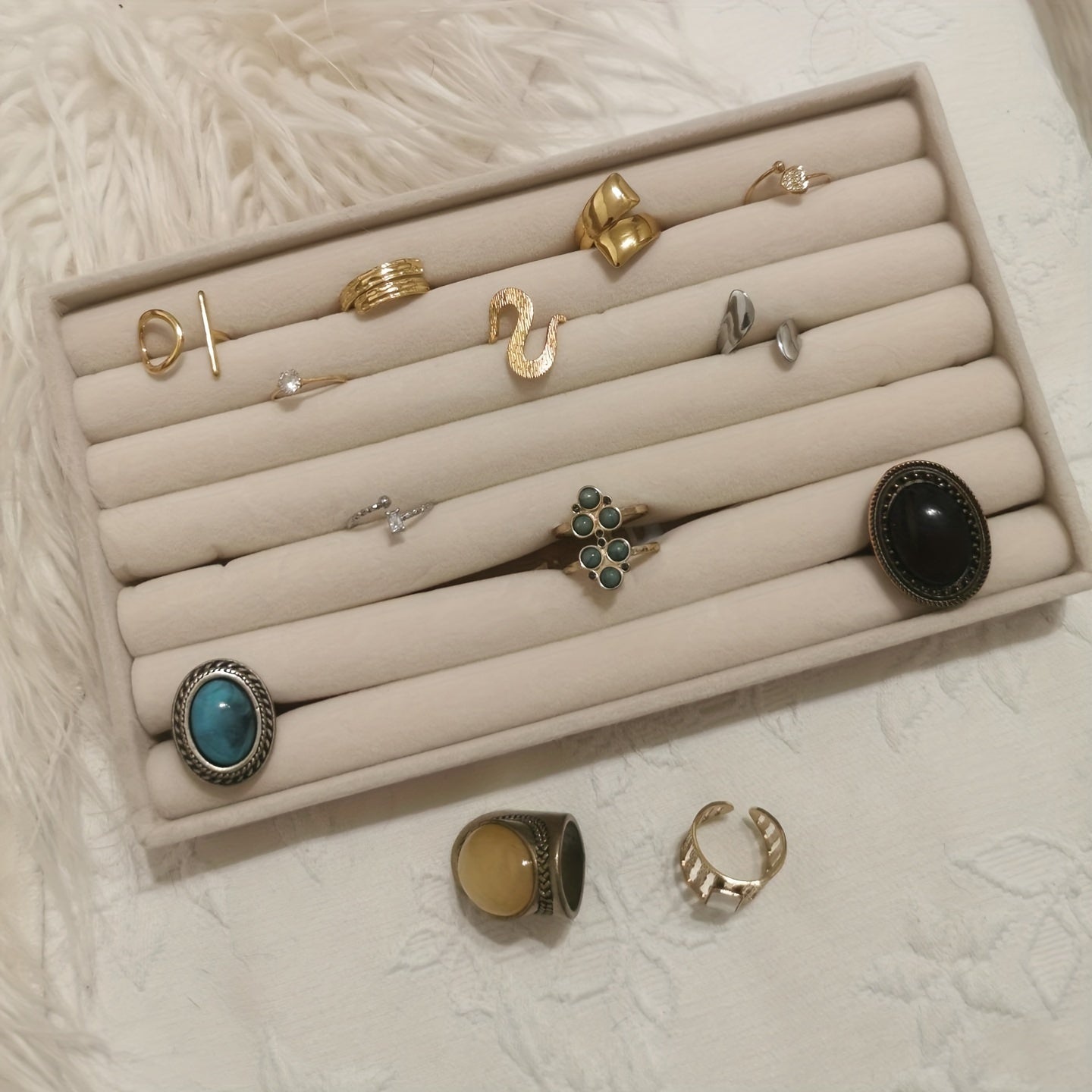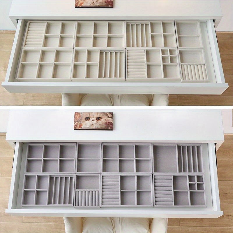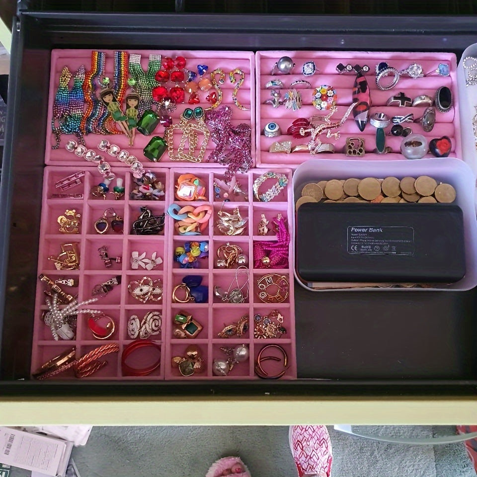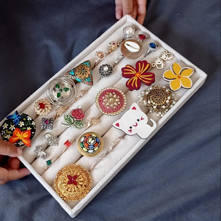 Zargarlik buyumlarini ko'rsatish uchun stol usti saqlash uchun taxta, quloq taqichlari, uzuklar va bilaguzuklar uchun