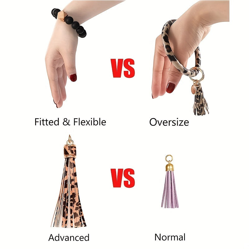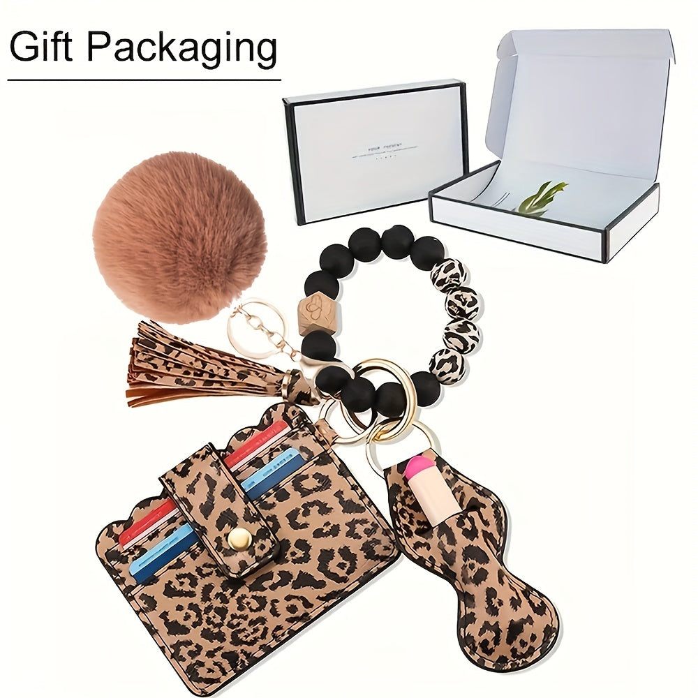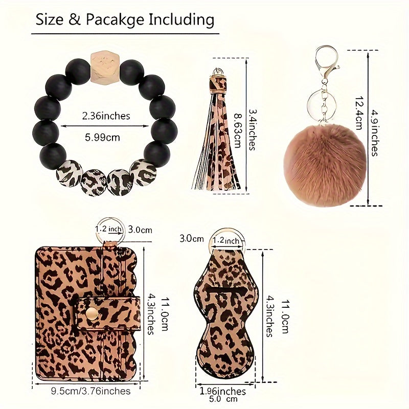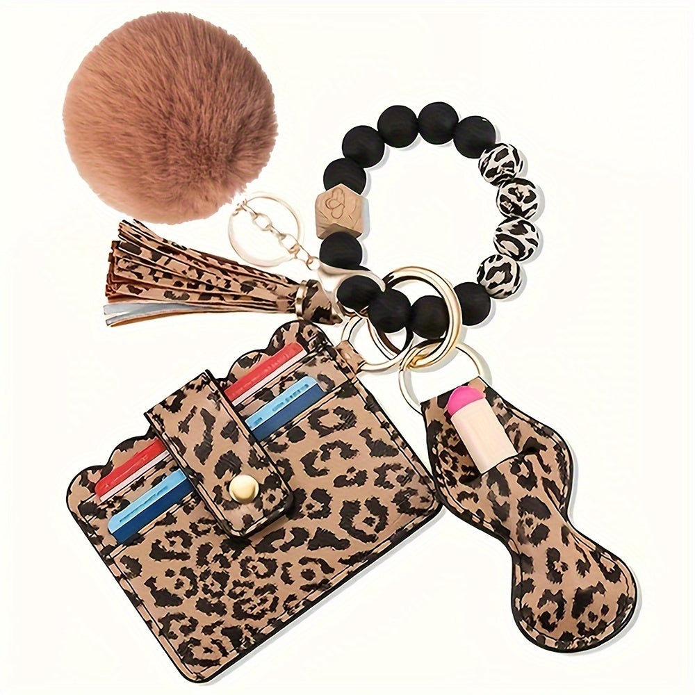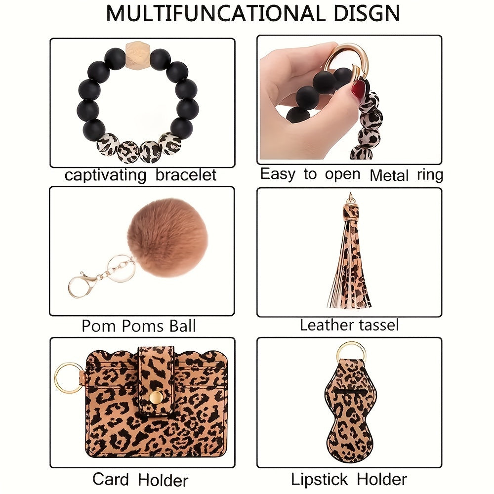 Ayollar uchun kalit zanjiri aksessuarlar, jumladan premium charm kalit uzuk, karta ushlagich hamyon, elastik silikon marjonli tassel kalit zanjiri va lab bo'yog'i ushlagich (6 dona) - ayollar uchun sovg'a sifatida mukammal.