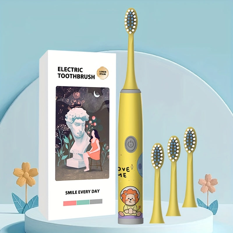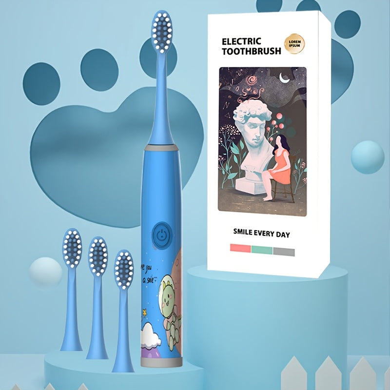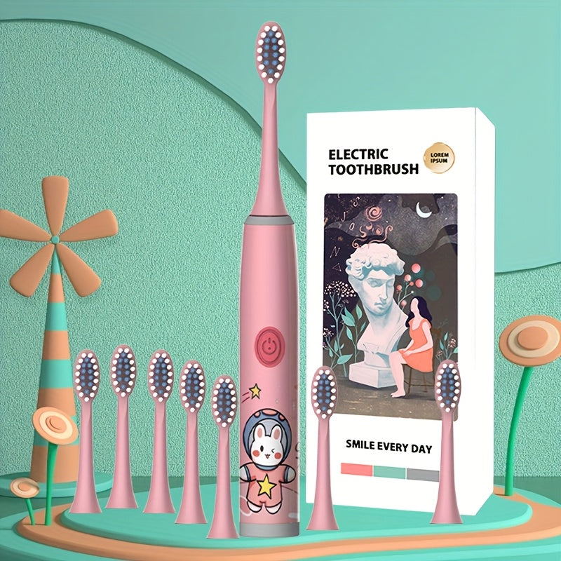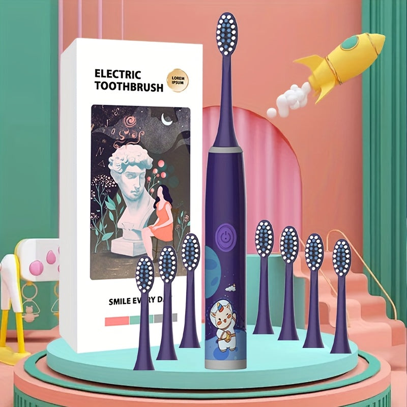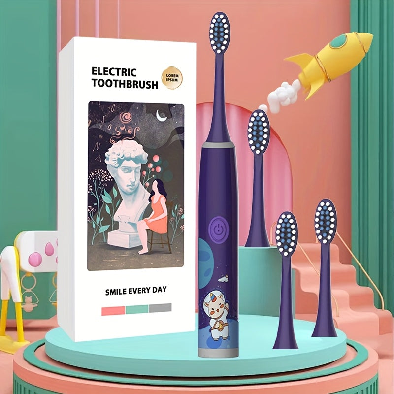Bolalar uchun elektr tish cho'tkasi yumshoq cho'tka sochlari batareya uslubi kosmik dizayni 4-8 ta cho'tka boshlarini o'z ichiga oladi