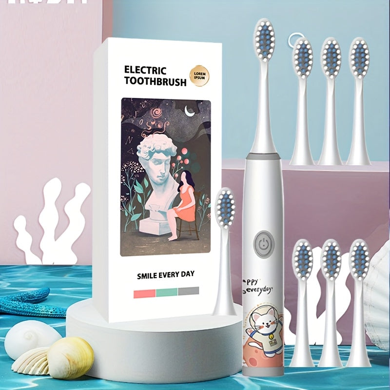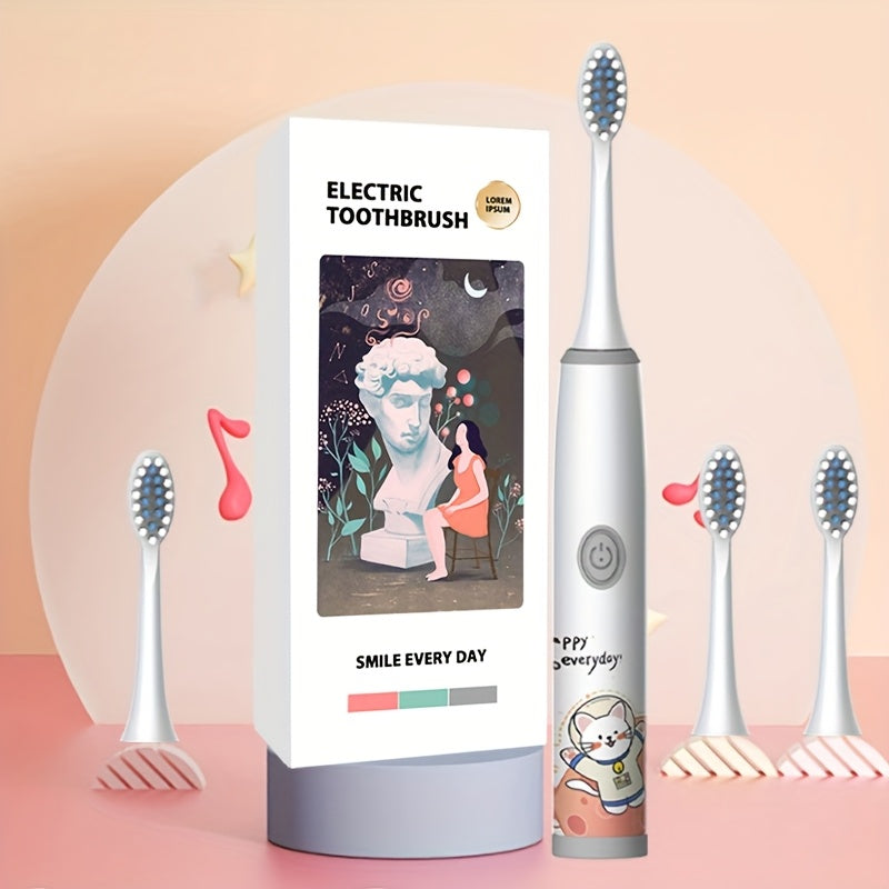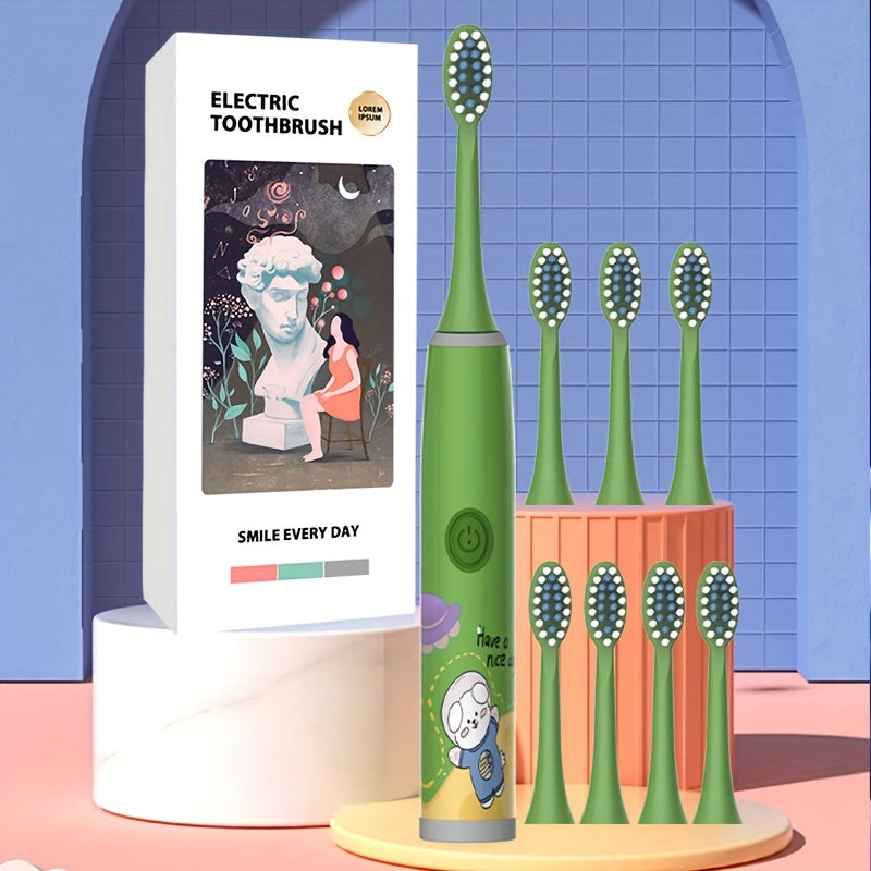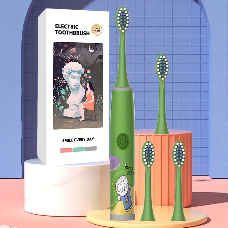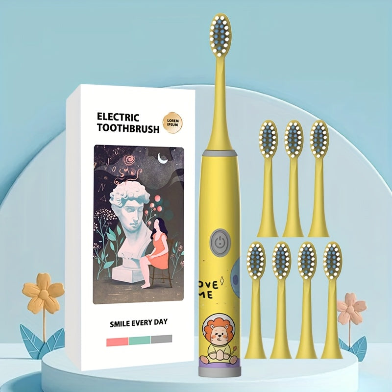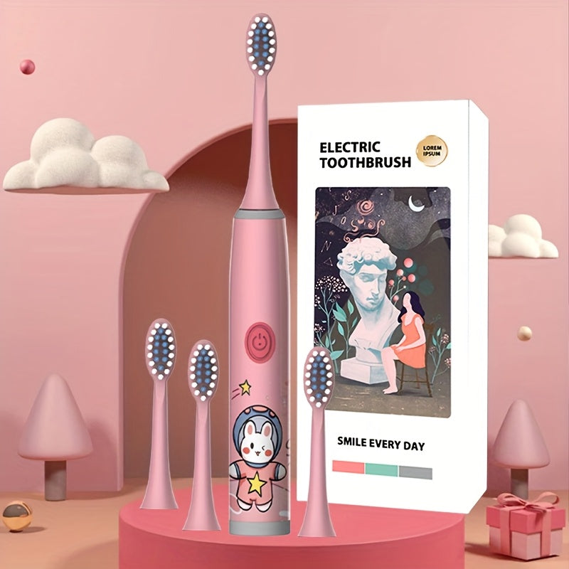 Bolalar uchun elektr tish cho'tkasi yumshoq cho'tka sochlari batareya uslubi kosmik dizayni 4-8 ta cho'tka boshlarini o'z ichiga oladi