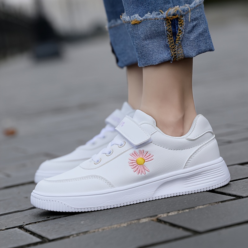 Bolalar uchun gullar naqshidagi moda krossovkalari, yengil, sirpanmaydigan, kiyish-o'chirish uchun qulay tasmalari, EVA tagligi, mato astari, tasodifiy kiyim uchun mukammal, yoqimli.