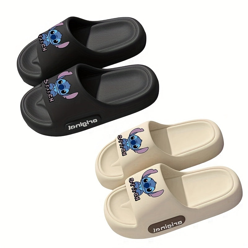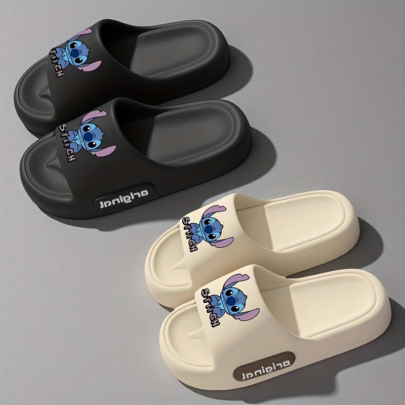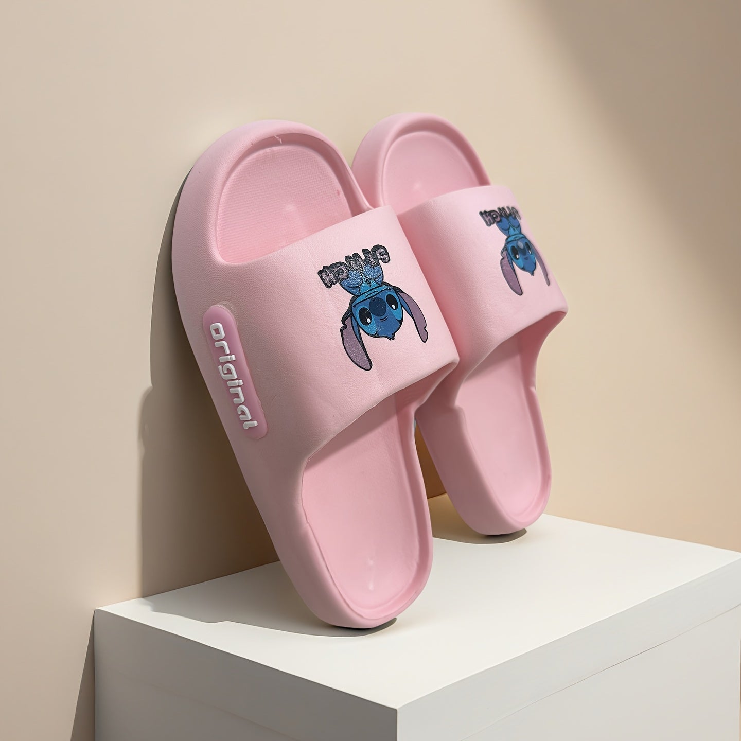 Kids Plush Slip-On Slippers, Cute Cartoon Print, Indoor Comfort, EVA
