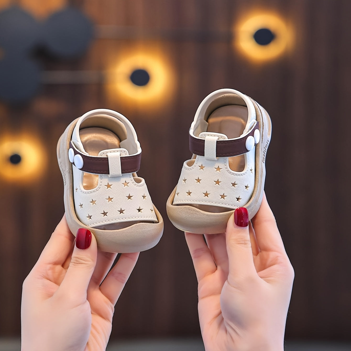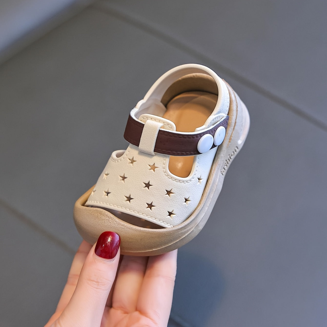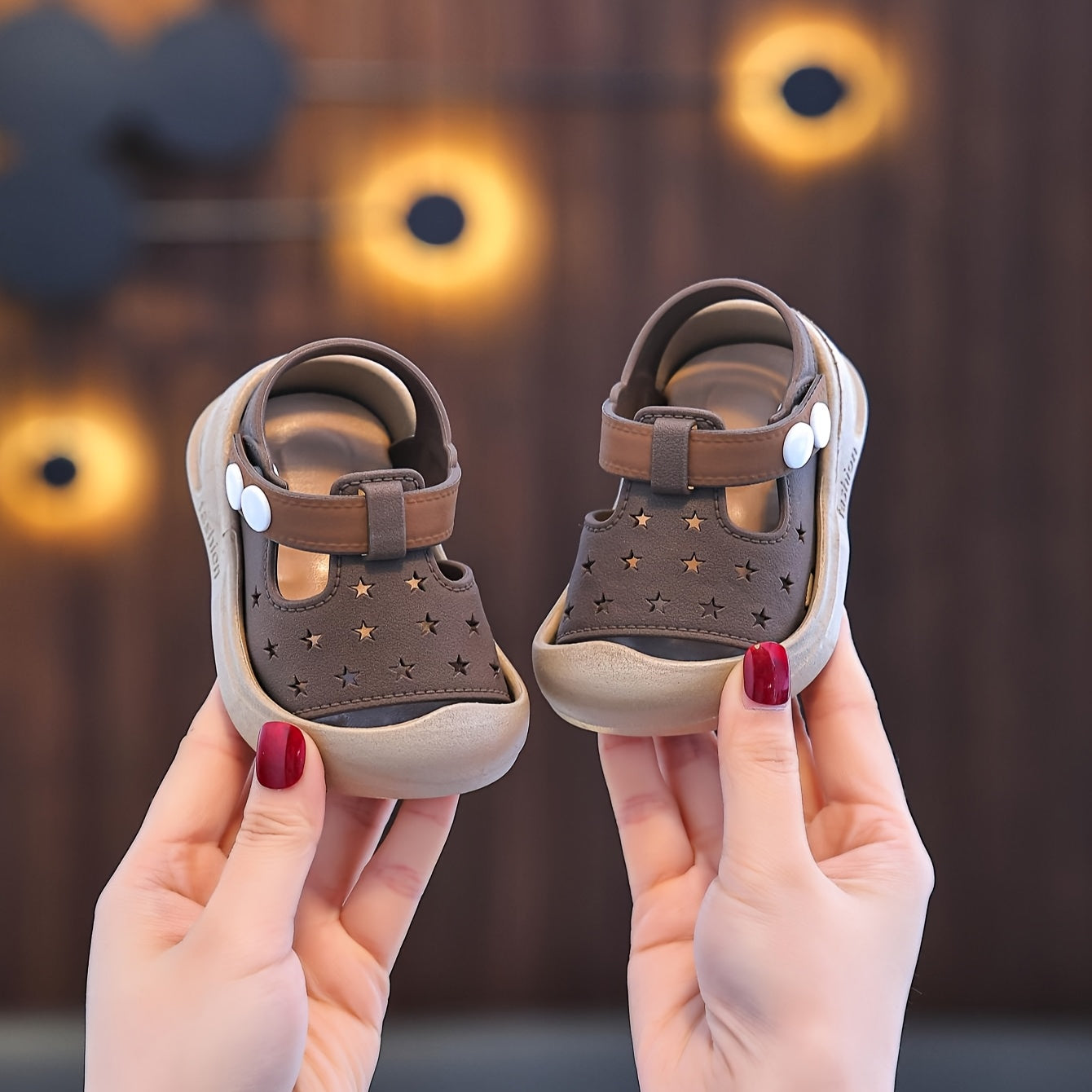 Bolalar uchun yozgi yulduzli osmon sandallari, bej va jigarrang ranglarda, tasmali, PVC taglik bilan, tasodifiy ochiq havoda kiyish, plyajga chiqish va o'yin vaqtida.