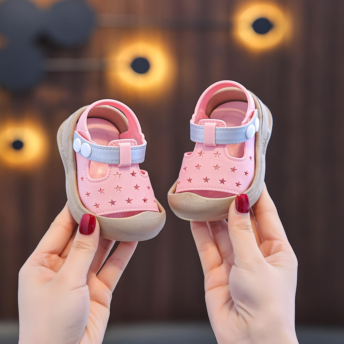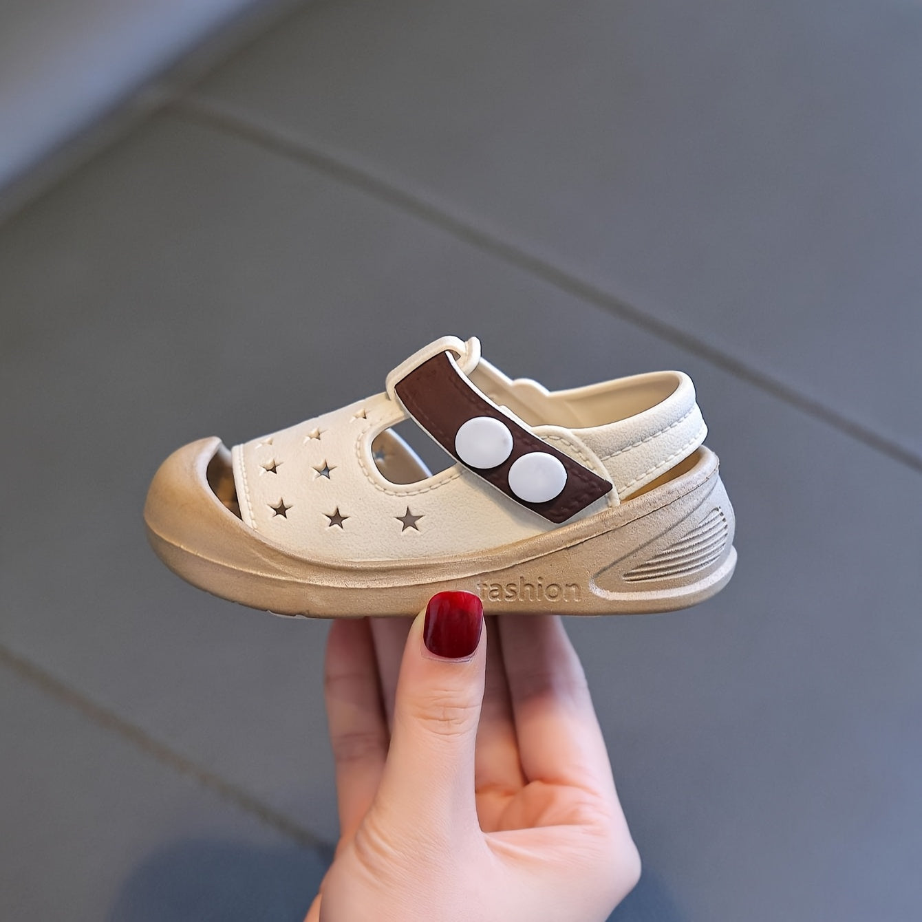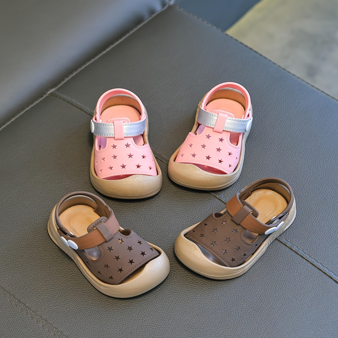 Bolalar uchun yozgi yulduzli osmon sandallari, bej va jigarrang ranglarda, tasmali, PVC taglik bilan, tasodifiy ochiq havoda kiyish, plyajga chiqish va o'yin vaqtida.