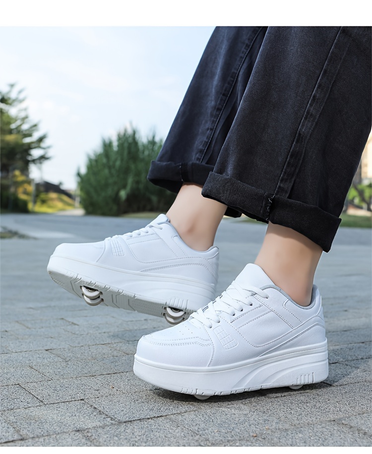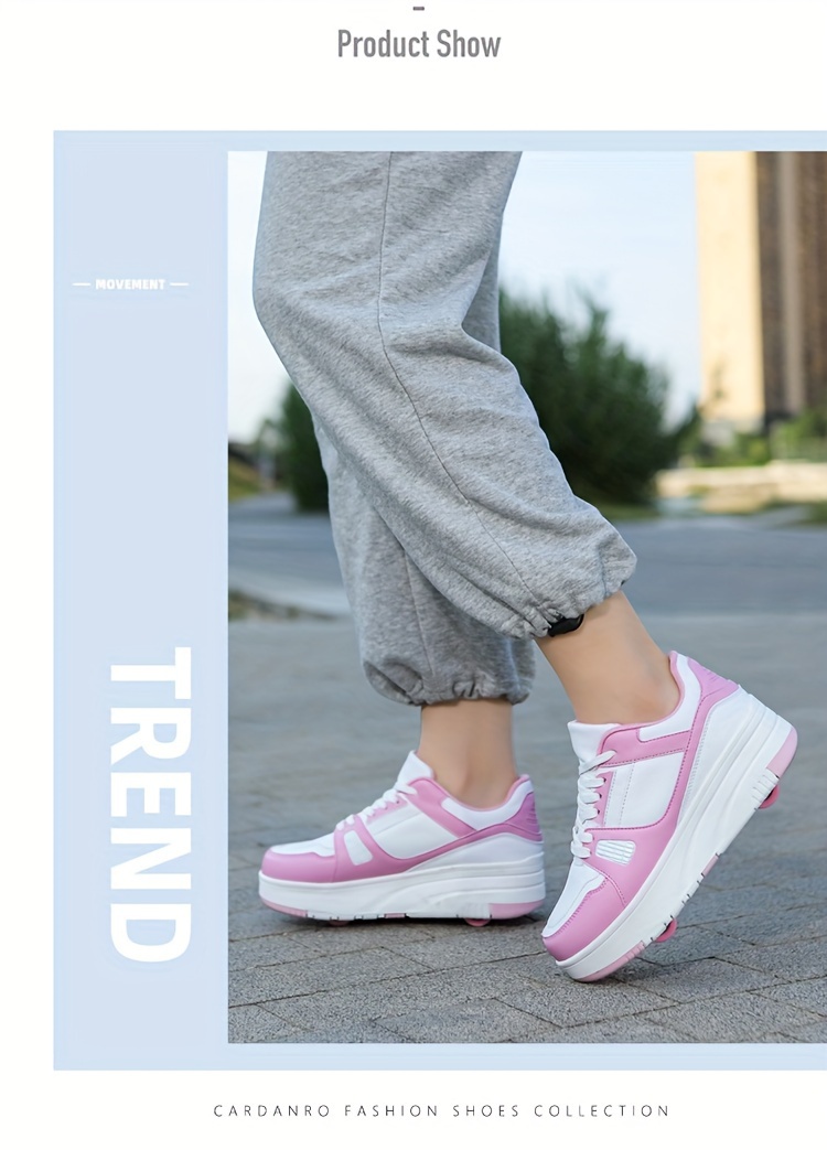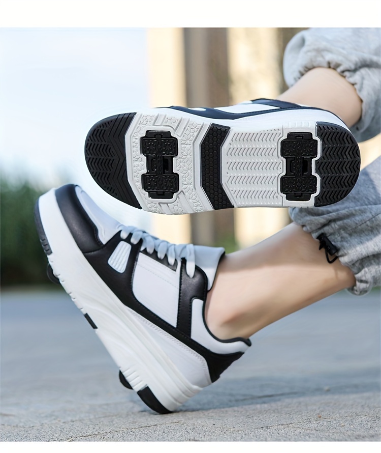 Bolalar uchun uniseks skeytbord poyabzallari, 8 g'ildirakli olib tashlanadigan rolikli skeytlar, piyoda yurish va tasodifiy kiyim uchun mos keladigan, plid matodan tayyorlangan pastki poyabzallar. 14 yoshgacha bo'lgan o'g'il va qizlar uchun mos.