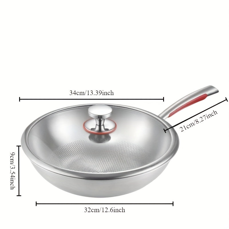 Oshxona zaruriyati: Qopqoq bilan yopishqoq bo'lmagan qovurish panasi, 304 zanglamas po'latdan tayyorlangan, gaz va induksion pishirish uchun mos, tozalash oson.