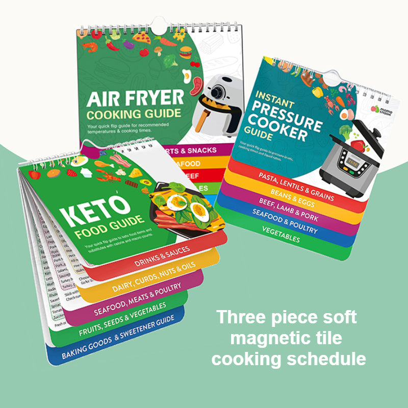 3 ta bo'lakdan iborat oshxona magnit to'plami: bosimli pishirgich, havo fritöre va qozon uchun pishirish vaqtlarini ko'rsatadigan jadvalni o'z ichiga oladi - muzlatgichingizda oson ovqat tayyorlash uchun yumshoq magnitlar.