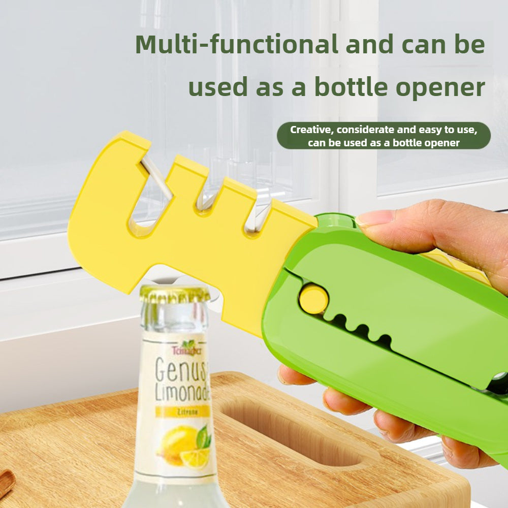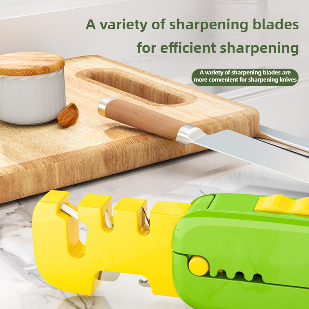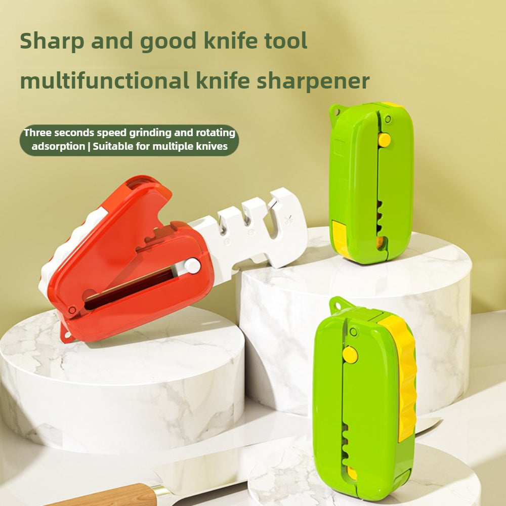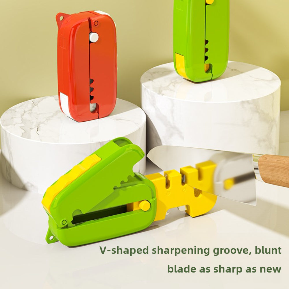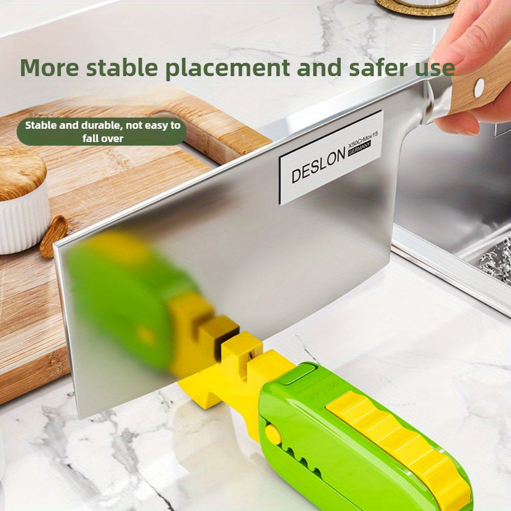 "Pichoqni o'tkirlashtiruvchi, osish teshigi bilan - Ko'p funksiyali, ixcham dizayn, mustahkam plastikdan tayyorlangan - Oshxona pichoqlari uchun mukammal - Qizil yoki yashil rangda mavjud - Quvnoq pichoqni o'tkirlashtirish vositasi"
