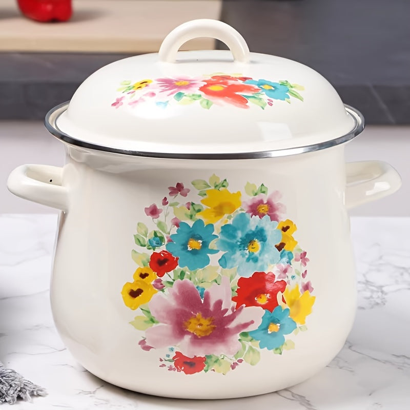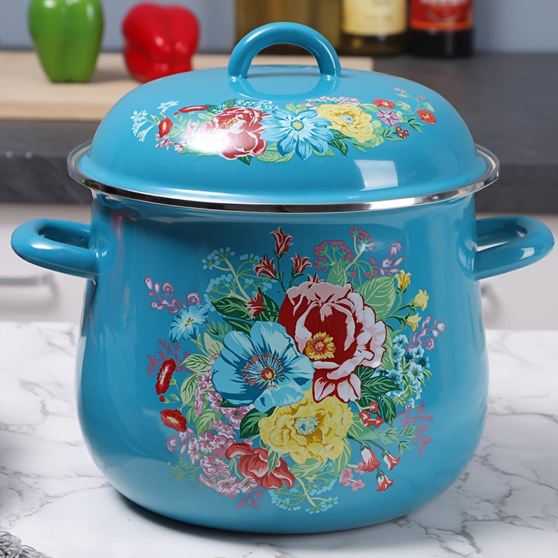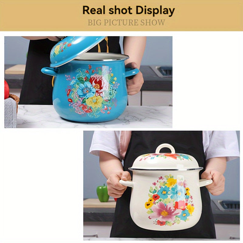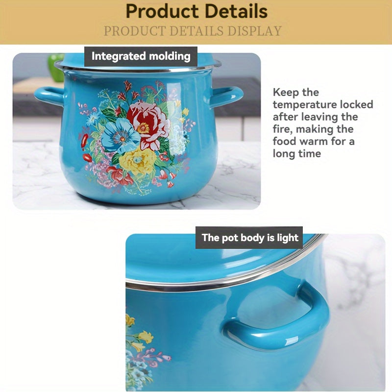 Katta Hajmli Emal Qoplamali Qozon Qopqoq bilan - 117.54oz Sos Qozon, Mustahkam va Tozalash Oson, Uyda yoki Tashqarida Gaz Plitasi Bilan Pishirish Uchun Ideal, Elektr Energiya Talab Qilmaydi