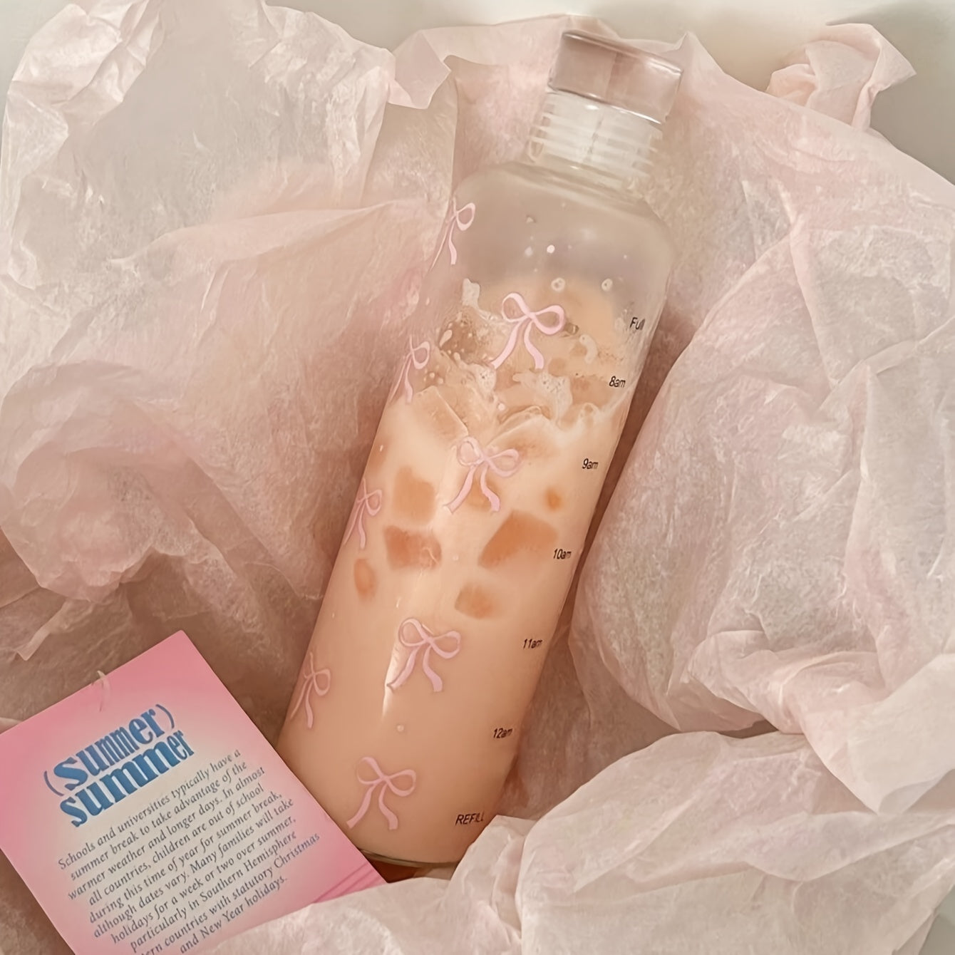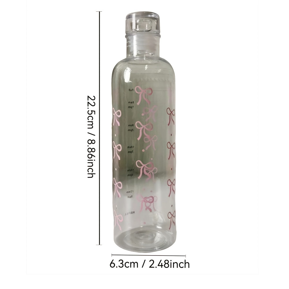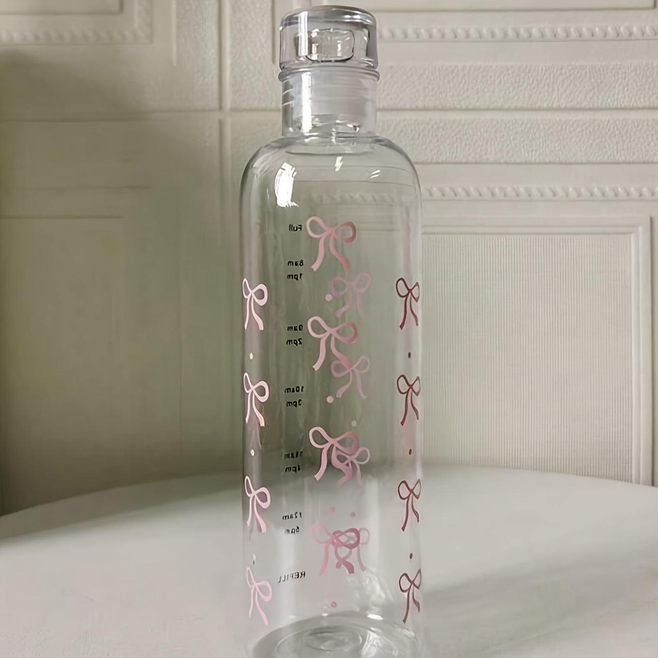 Katta sig'imli plastik suv shishasi, bowknot print bilan, yengil va PVC-siz, velosipedda va ochiq havoda faoliyatlar uchun ajoyib, turli tadbirlar uchun ideal sovg'a.