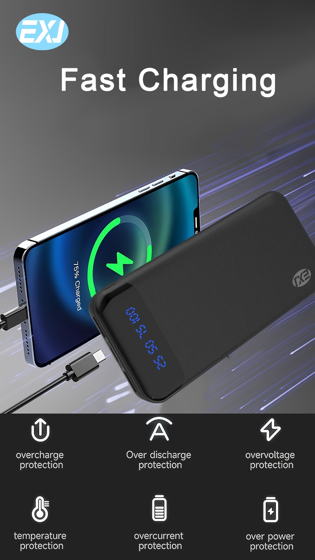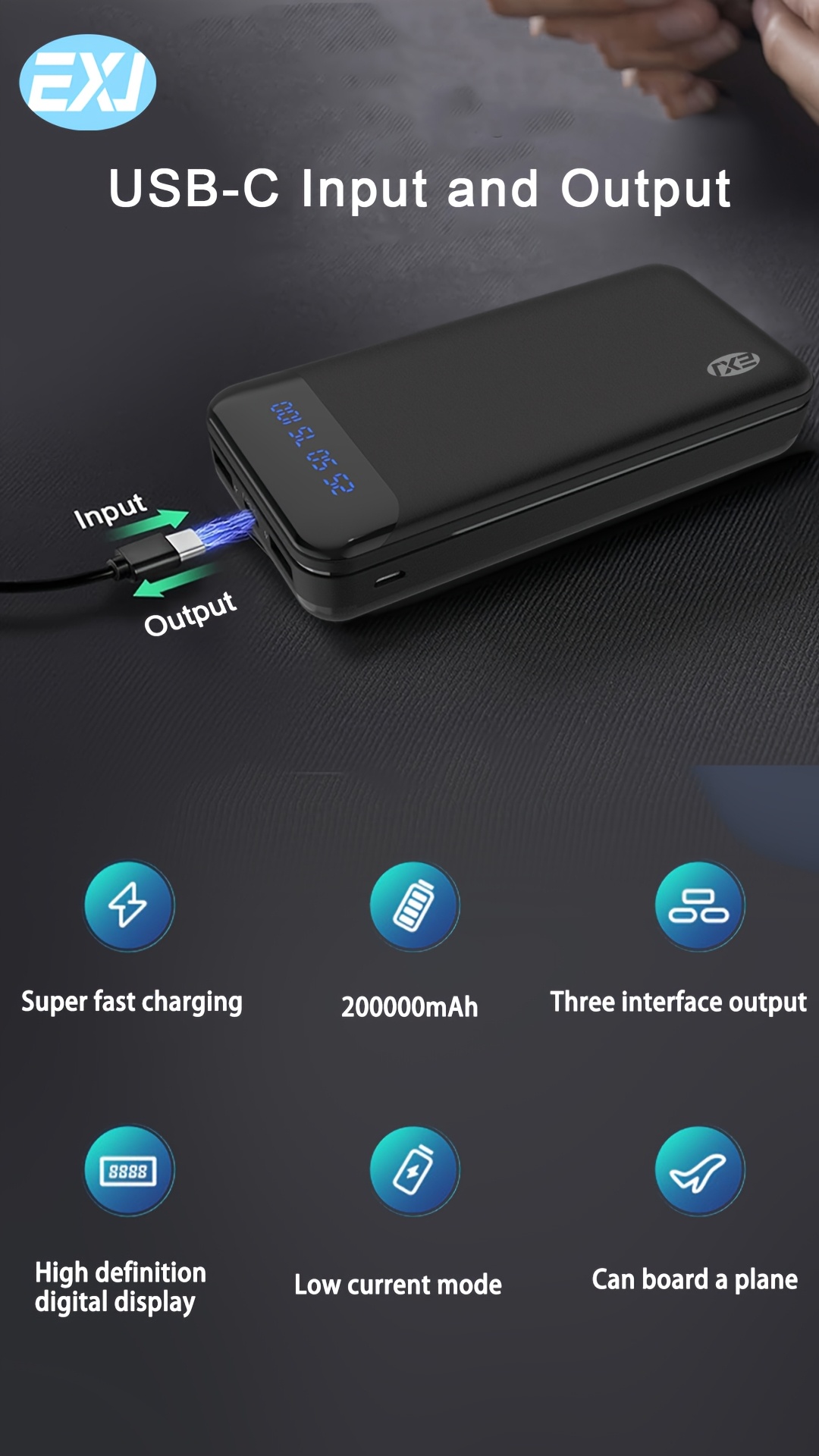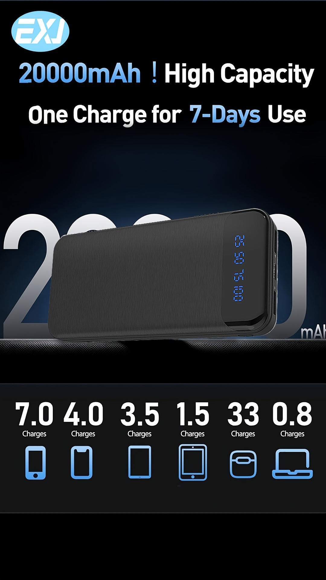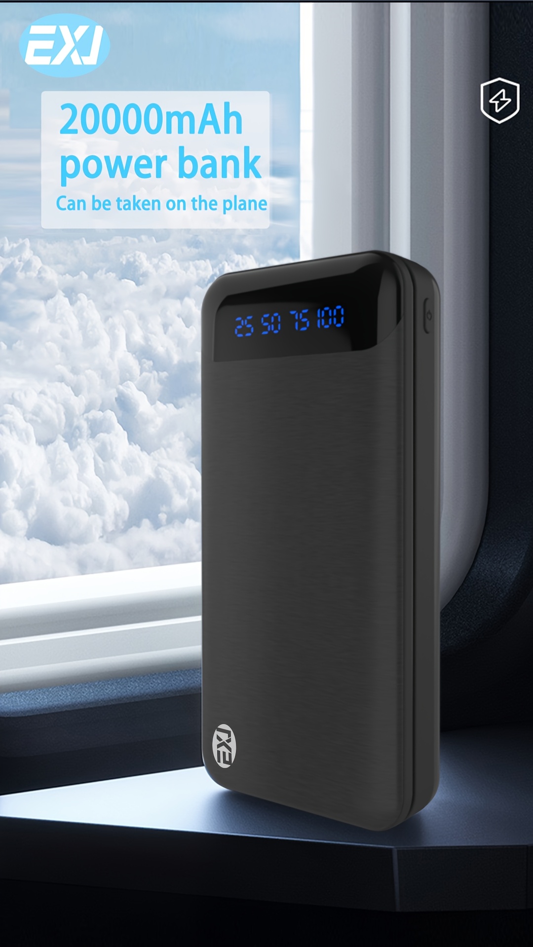 20000mAh/10000mAh sig'imga ega katta quvvatli portativ quvvat banki, 2xUSB chiqishi, Android/iPhone qurilmalari bilan moslik, LED va raqamli ko'rsatkich, hamda xavfsiz polimer litiy batareyasi.