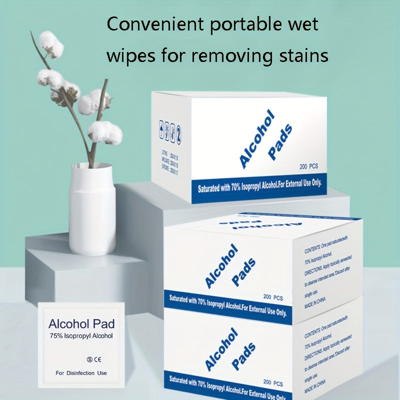 Katta bir martalik spirtli tozalash matolari - 200 dona, 75% to'ldirish, bo'yoqsiz, telefonlar, idishlar, zargarlik buyumlari va boshqalar uchun bir martalik tozalash padlari, portativ dog' tozalovchi.