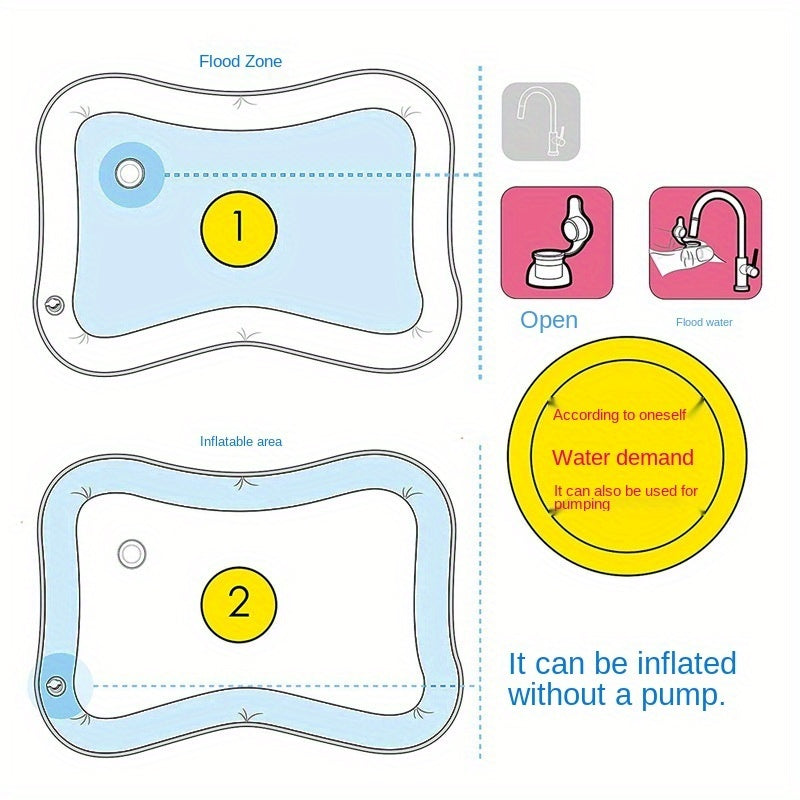 Kichkina suv matochaği 0-3 yoshlar uchun, qalinlashtirilgan PVC, interaktiv suv o'yin mato, ko'k va qizil