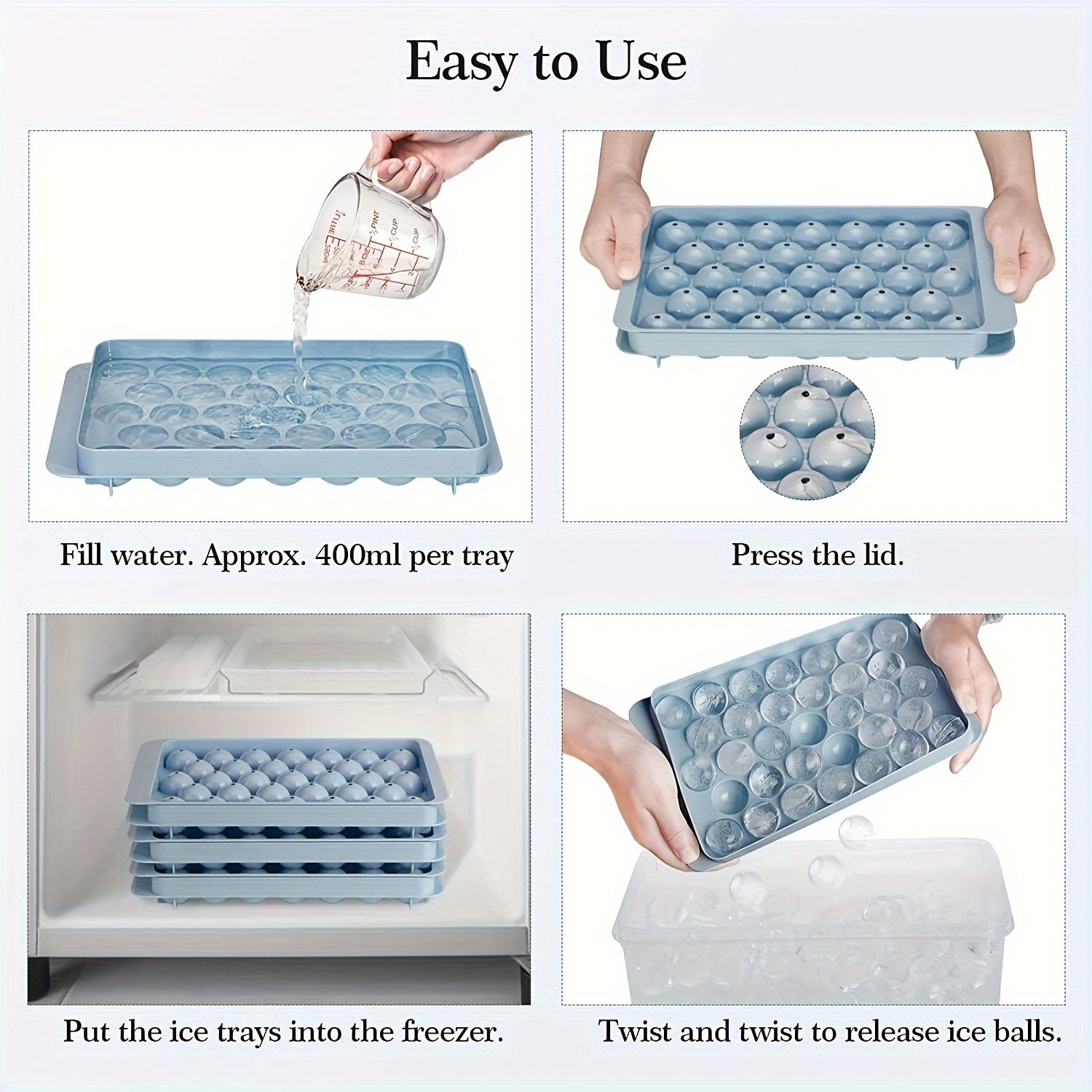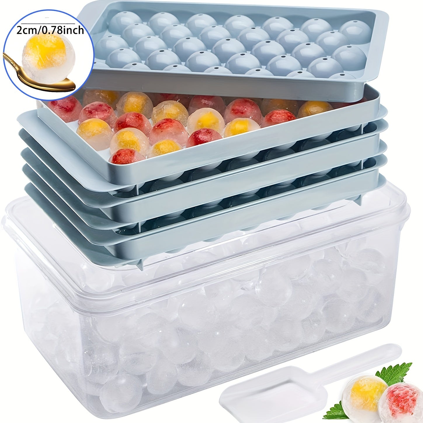 Katta to'plam muz to'pi shakllari, oziq-ovqat uchun mo'ljallangan plastmassa, oshxona muz tayyorlagich, 99 ta to'p