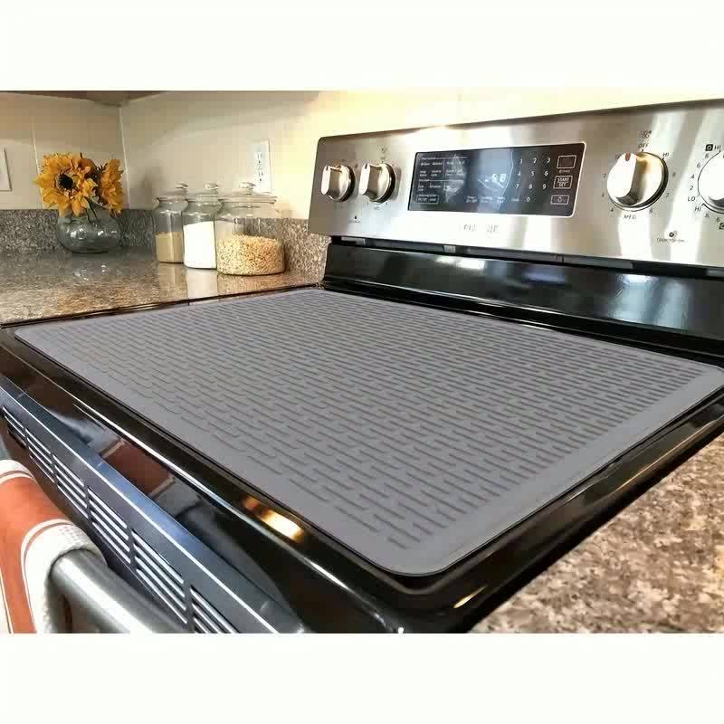 Katta silikon pechka usti qopqog'i - 71.12 sm x 50.8 sm - Isiga chidamli, sirpanmaydigan, suv o'tkazmaydigan, elektr va gaz pechkalari uchun egiluvchan, qora - Oshxona himoyasi, pechka usti himoyachilari va boshqa ko'p narsalar uchun mukammal