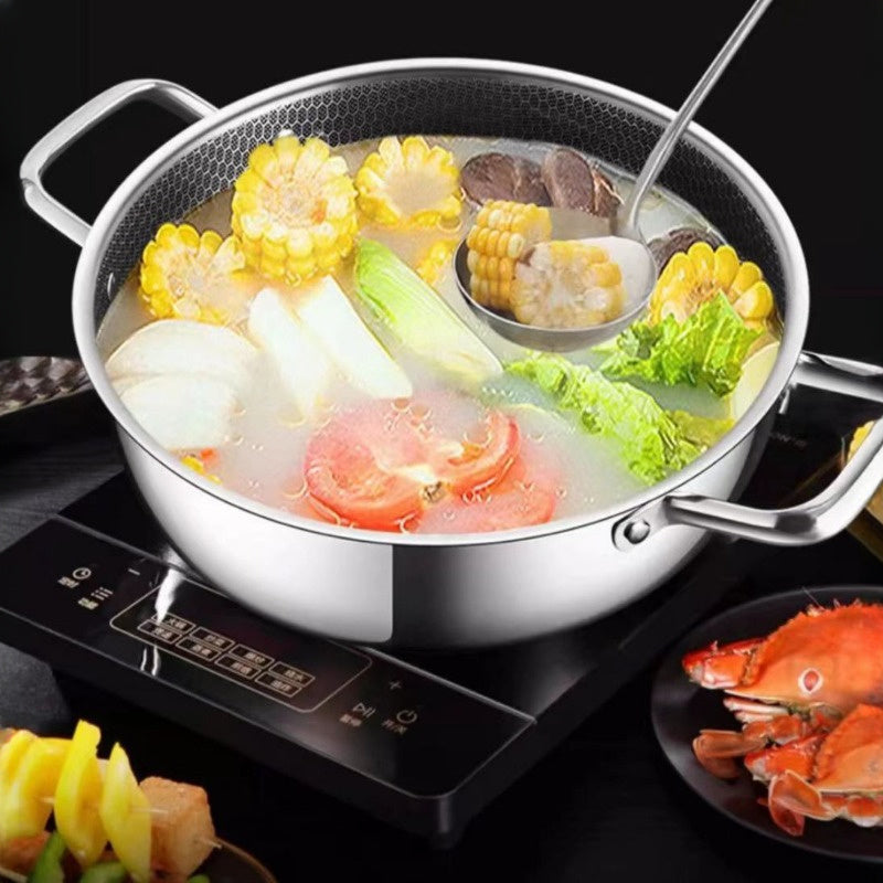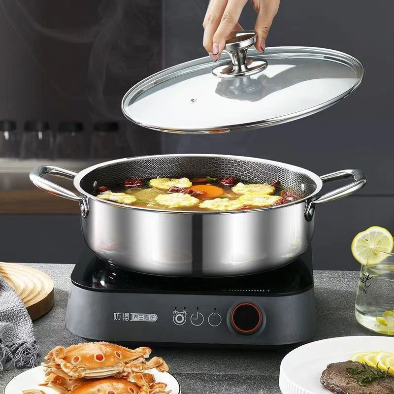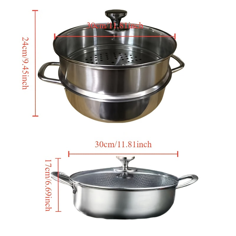 Katta zanglamas po'latdan yasalgan qozon qopqoq bilan - bug'lash va pishirish uchun ko'p funksiyali ikki qatlamli dizayn, yopishmaydigan asal to'rtburchak naqshi, induktsion plitalar bilan mos keladi.
