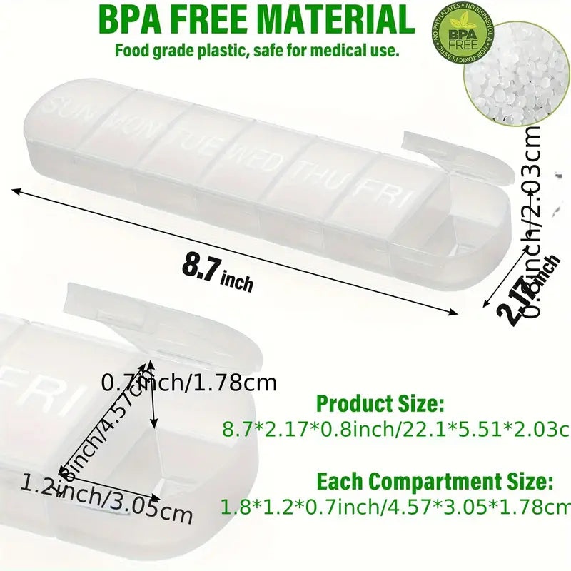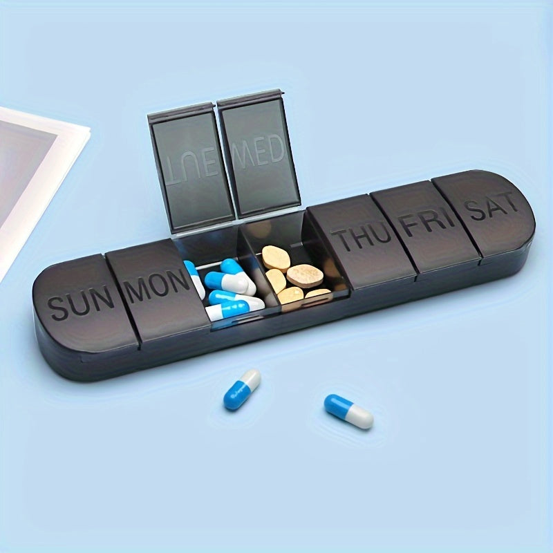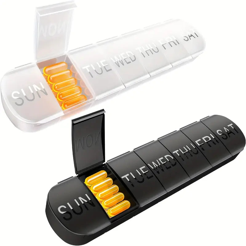 Vitaminlar va baliq yog'i uchun 7 ta bo'limli katta haftalik dori tashkilotchisi, sayohatga qulay qopda.