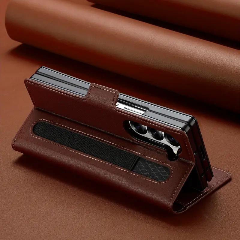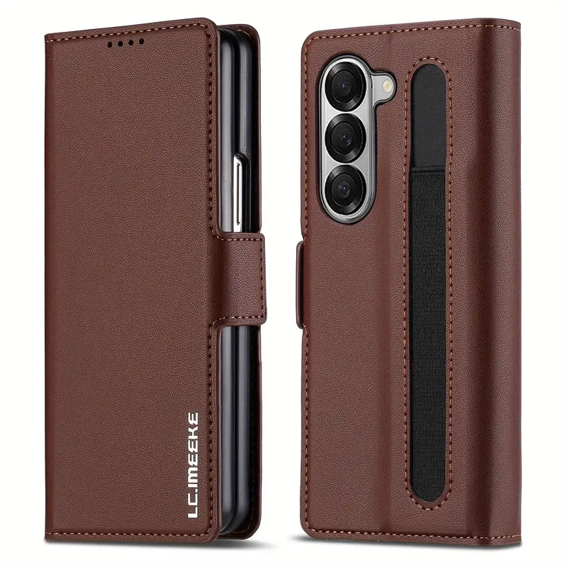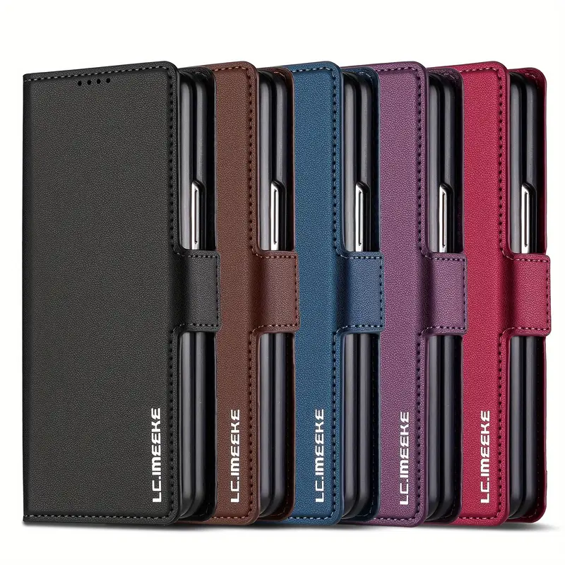 LC.IMEEKE Biznes Moda Flip Sun'iy Charm Telefon Qopqog'i SamSung Galaxy Z Fold 6/5/4/3/5G uchun Qalam Qutisi, Kredit Kartasi Uslubi - Ayollar va Erkaklar uchun