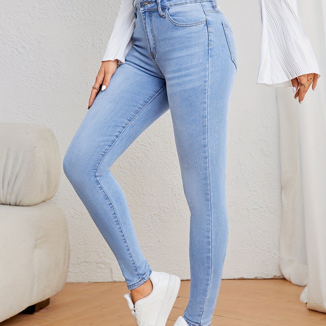 Ayollar uchun och ko'k tor jinsi shimlar, yuqori bel, tor kesim, kuz va qish mavsumida har kuni kiyish uchun mukammal.