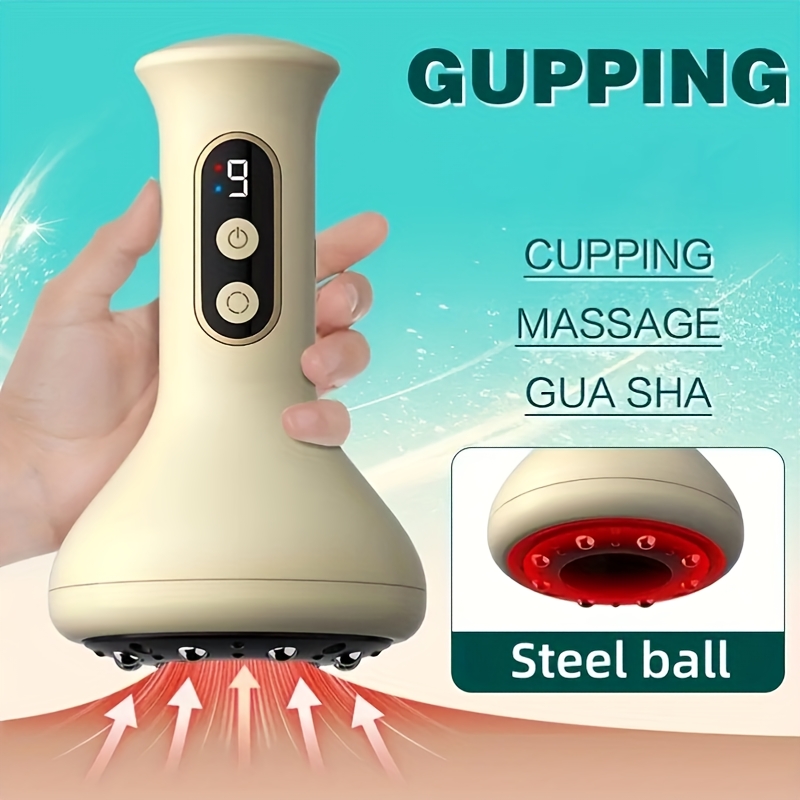 Yengil sariq elektr Gua Sha qirqish massajeri, so'ruvchi kubik bilan, USB orqali zaryadlanadigan, qarindoshlar va do'stlar uchun ideal sovg'a