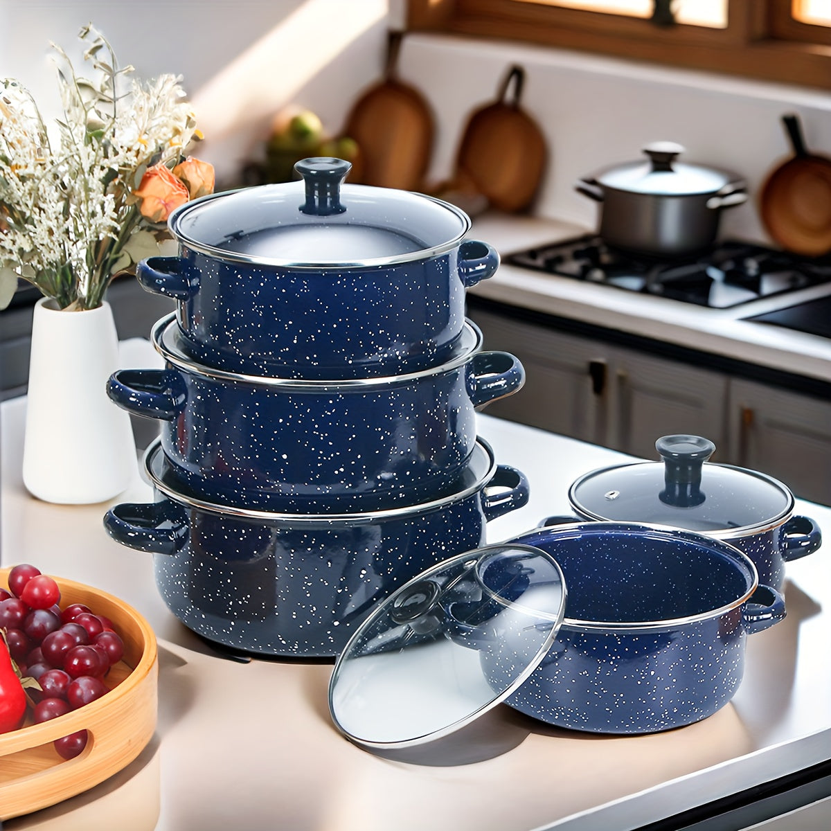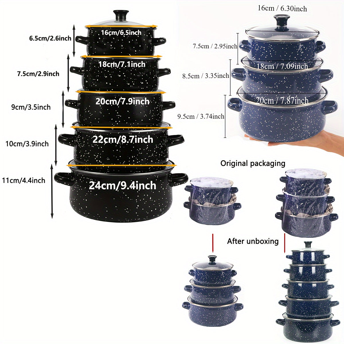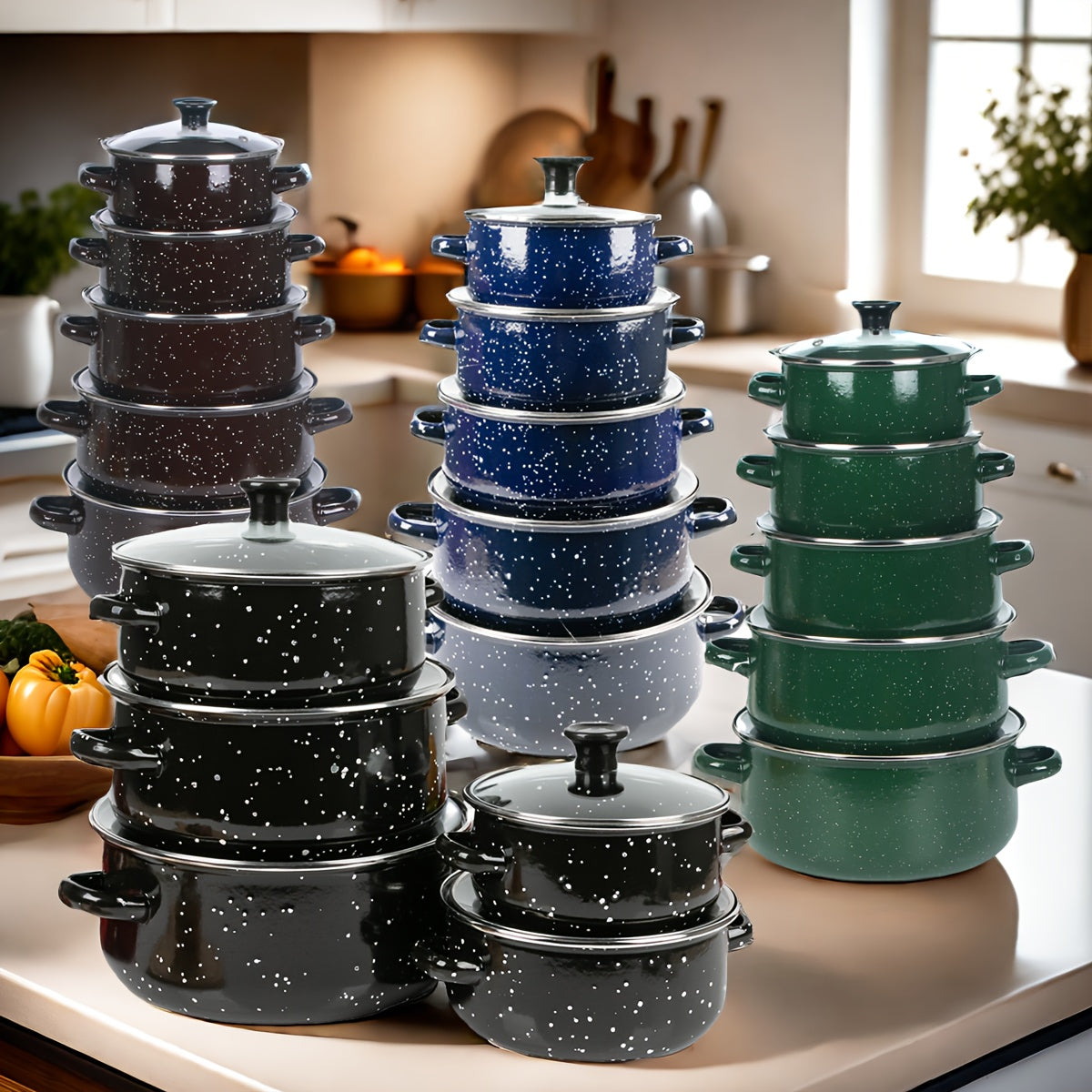 Yengil emalli qozonlar to'plami, 3 ta qism, yopishqoq bo'lmagan oshxona idishlari, sho'rva, qaynash, qovurish uchun
