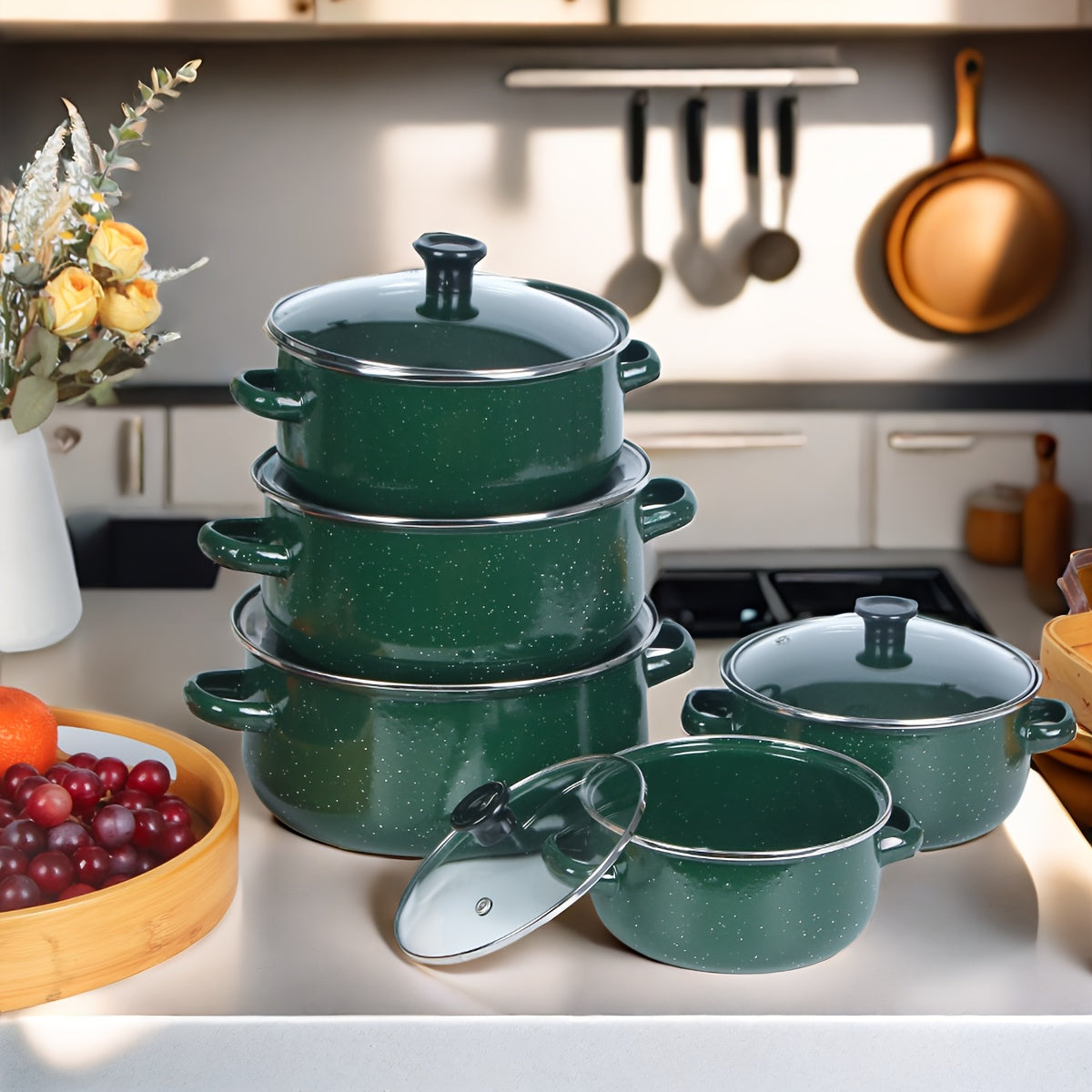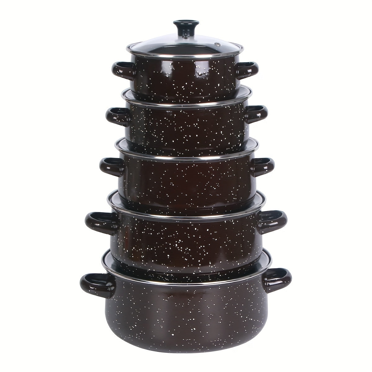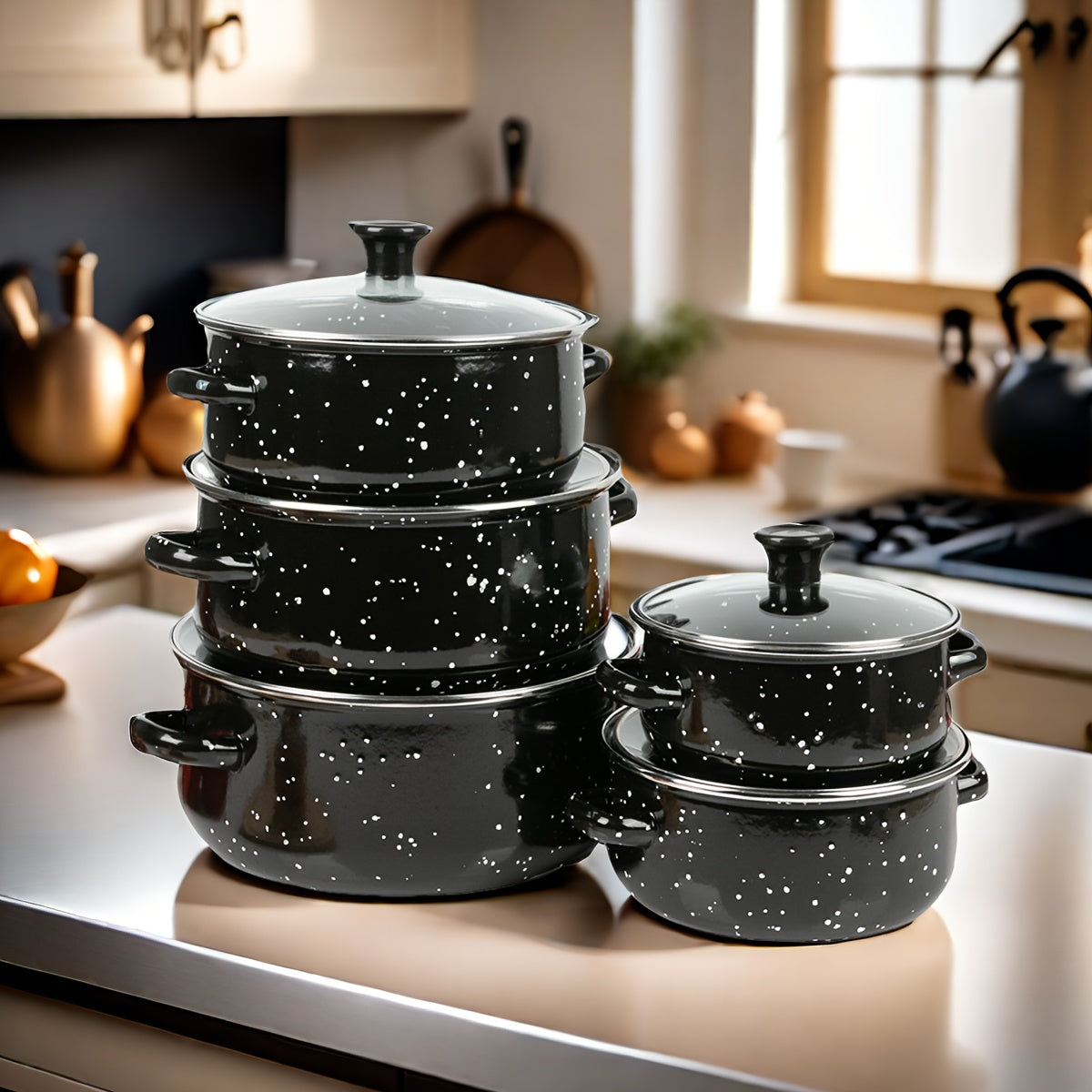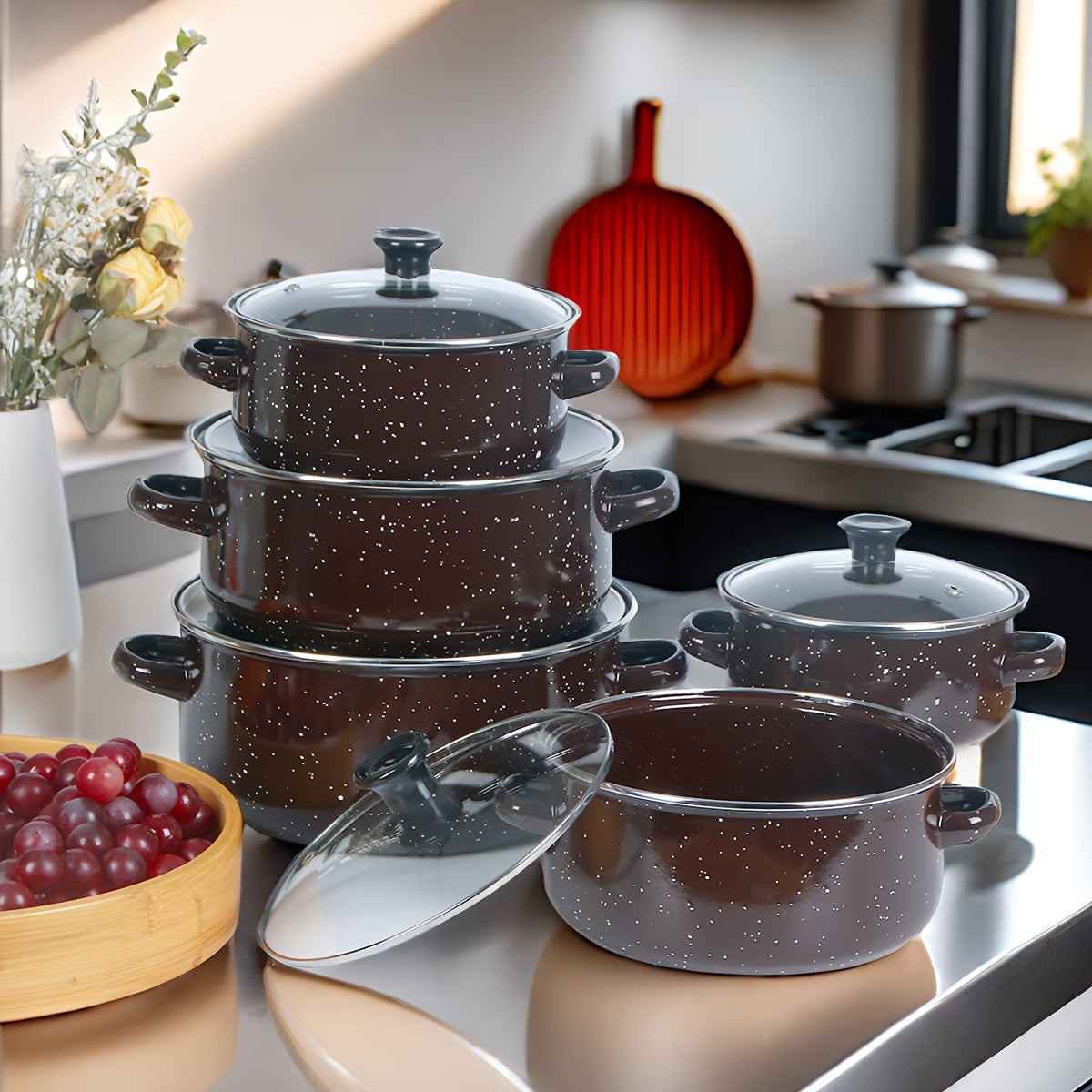 Yengil emalli qozonlar to'plami, 3 ta qism, yopishqoq bo'lmagan oshxona idishlari, sho'rva, qaynash, qovurish uchun