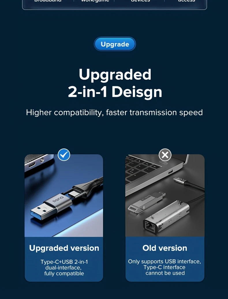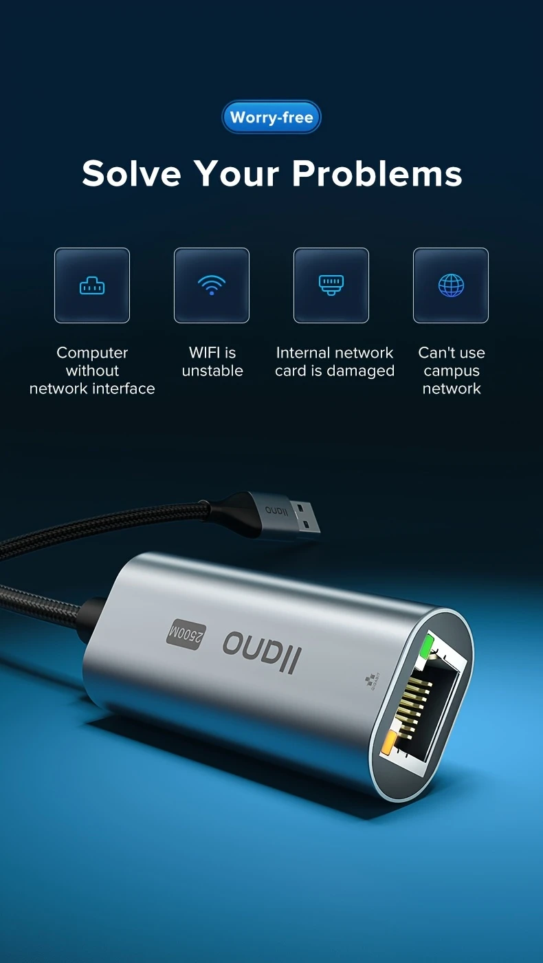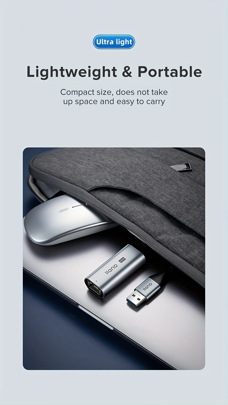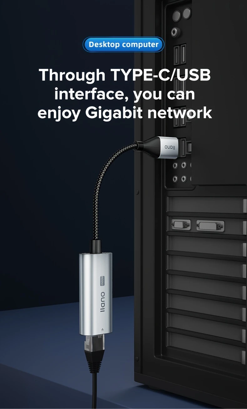 LLANO USB 3.1 dan RJ45 Gigabit Ethernet Adapter o'yinlar va jonli translyatsiyalar uchun, USB quvvat rejimiga ega alyuminiy qotishma tarmoq konvertori