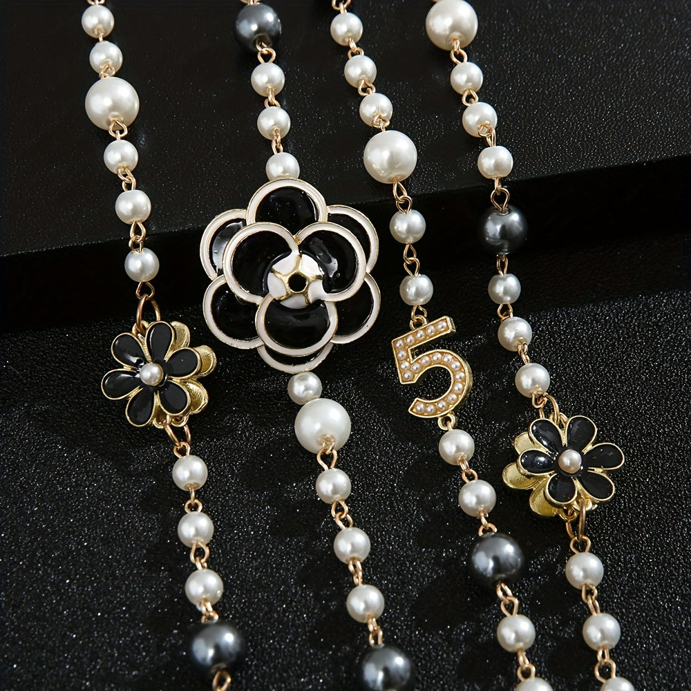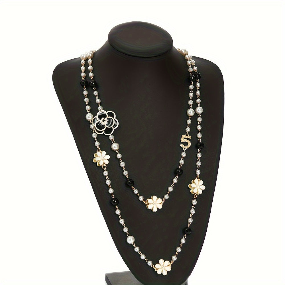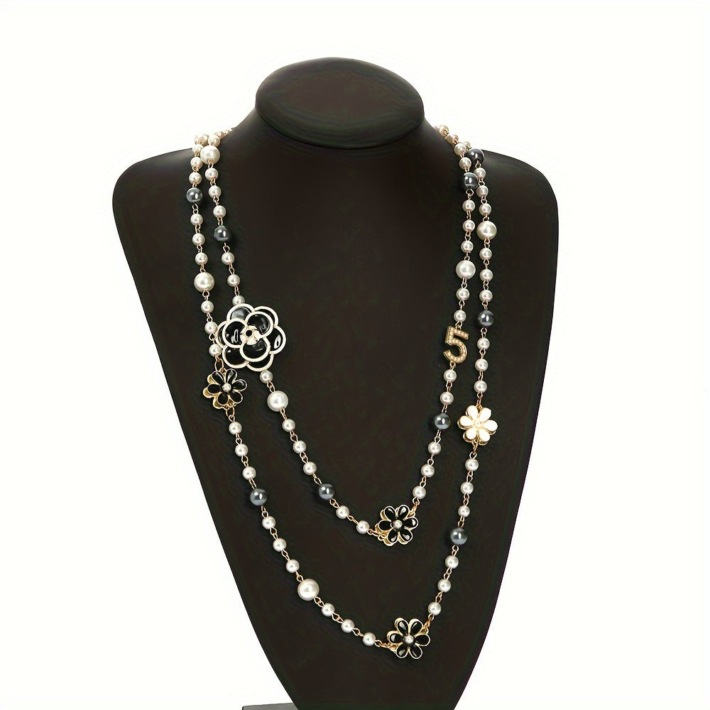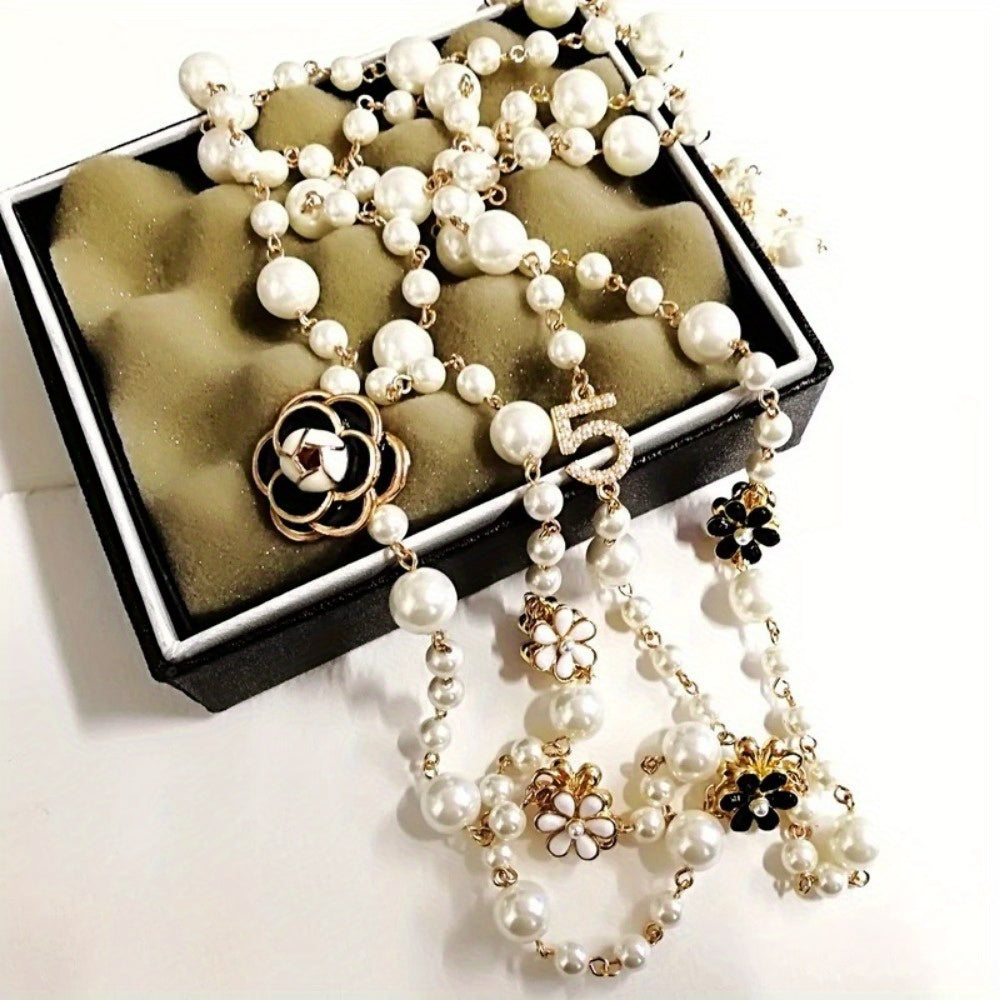 Uzoq fransuz sud uslubidagi sviter zanjiri, koreys uslubidagi gullar bilan, soxta marvarid, ikki qatlamli pandantli bilaguzuk, raqam 5 - noyob zargarlik buyumi