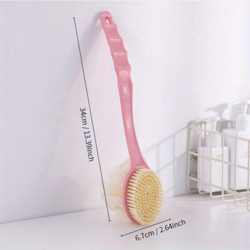 Uzun tutqichli hammom cho'tkasi, yumshoq tuklar, ergonomik ushlash va yumshoq eksfoliatsiya va tinchlantiruvchi dushlar uchun ikki funktsiyali.