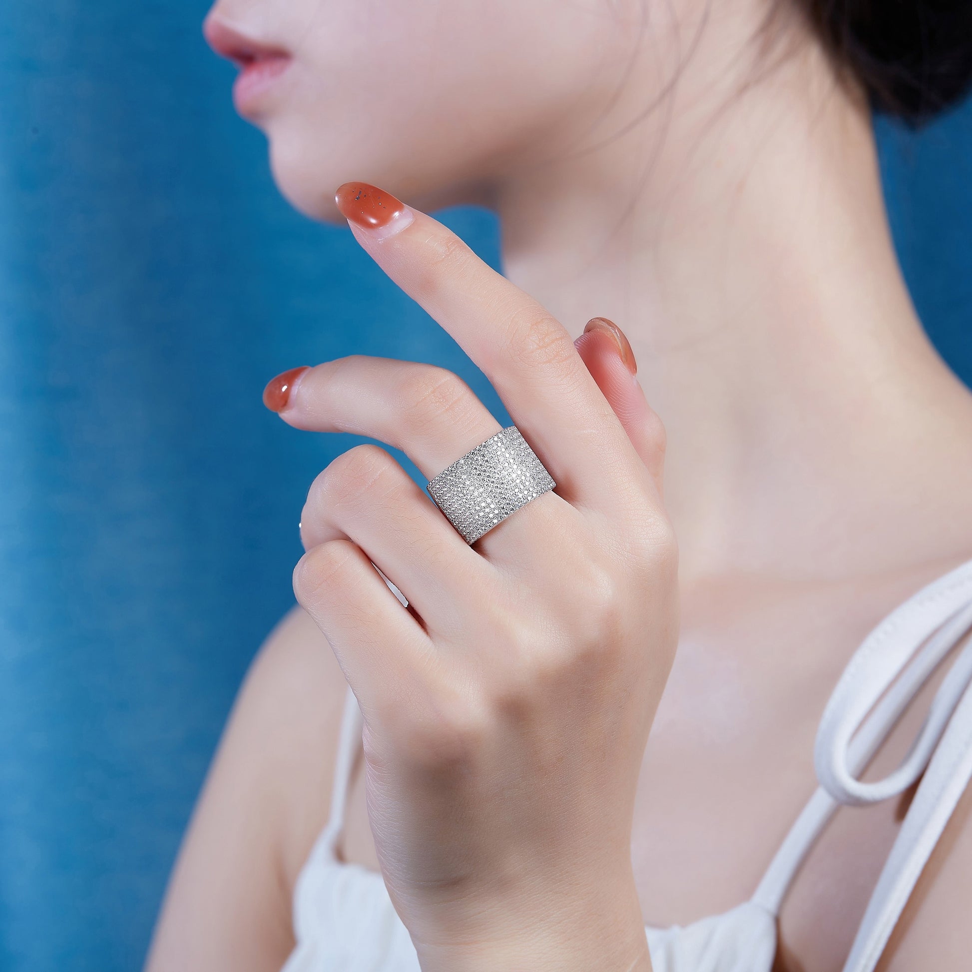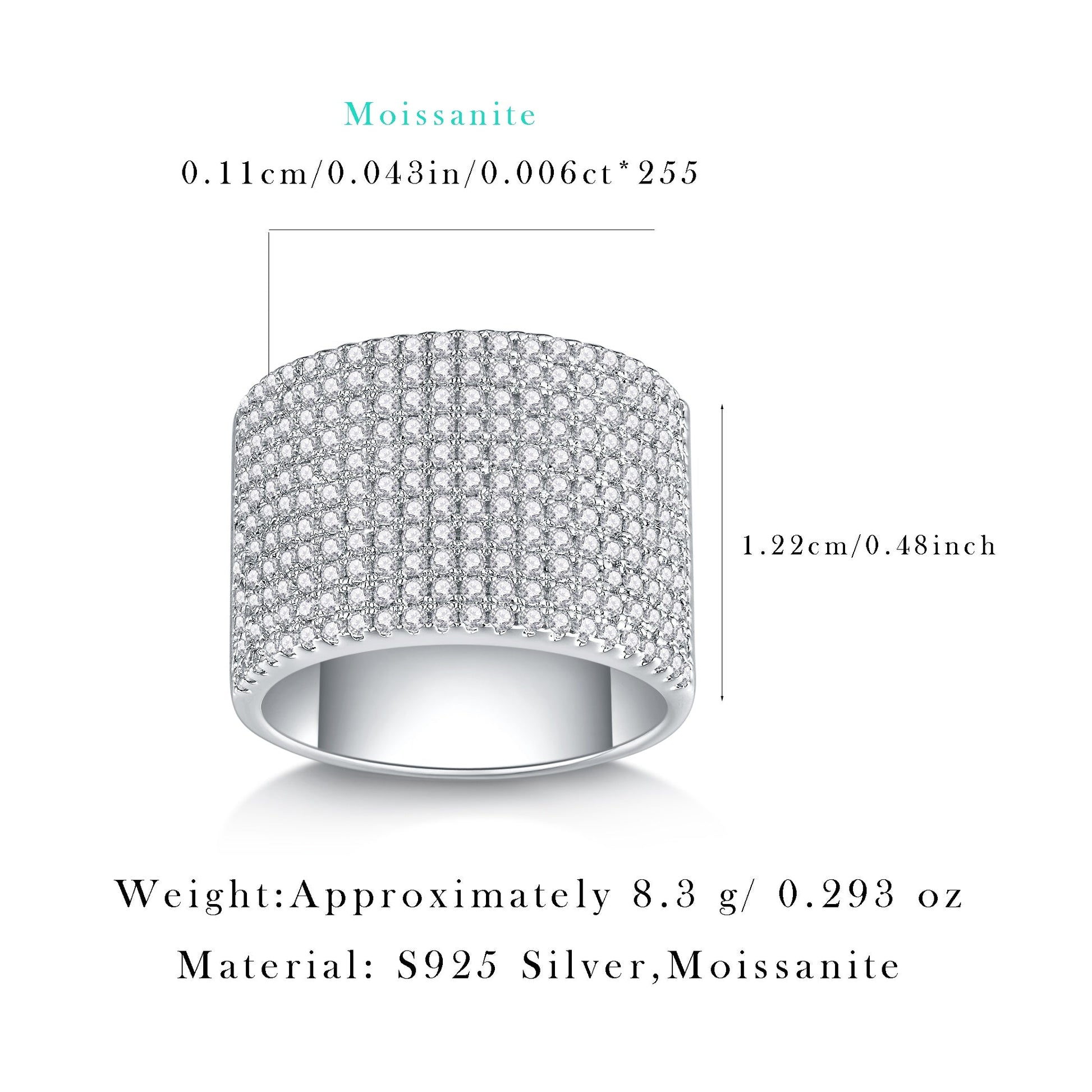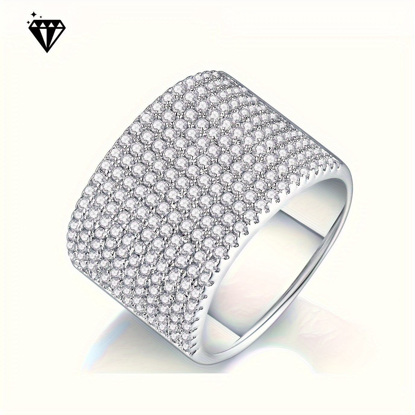 Zarif 925 Silver to'y halqasi, muzlatilgan porloq Moissanite keng tasma - Ayollar uchun mukammal zargarlik sovg'asi