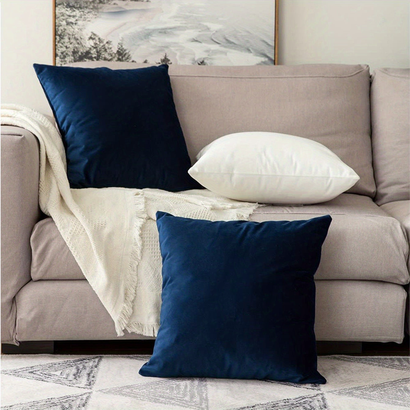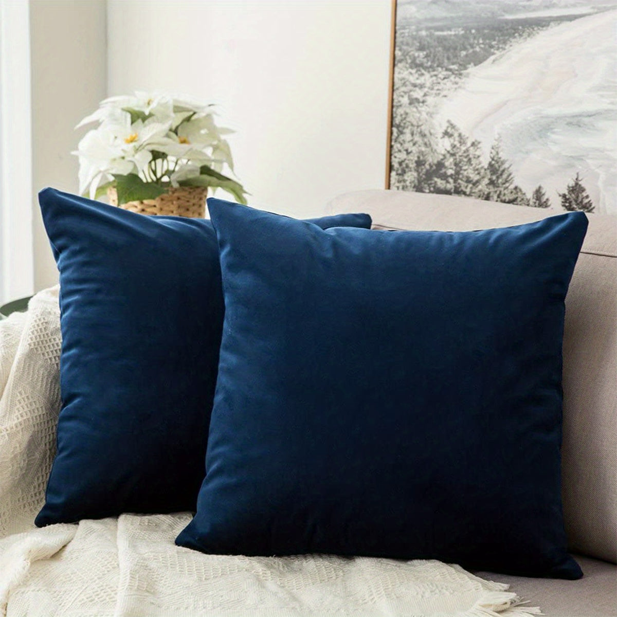 Qorong‘u ko‘k Chenille yostiq qopqog‘i, zippersi va dog‘ga chidamli mato bilan