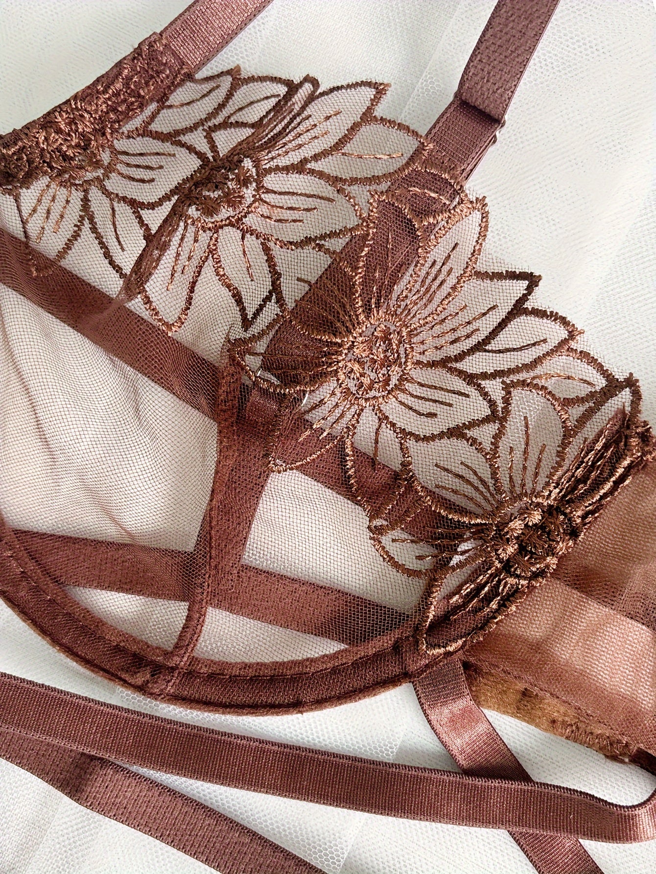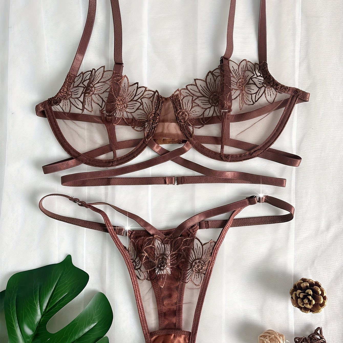 Hashamatli gullar bilan tikilgan ichki kiyim to'plami: Ayollar uchun to'rli brass va ichki kiyim.