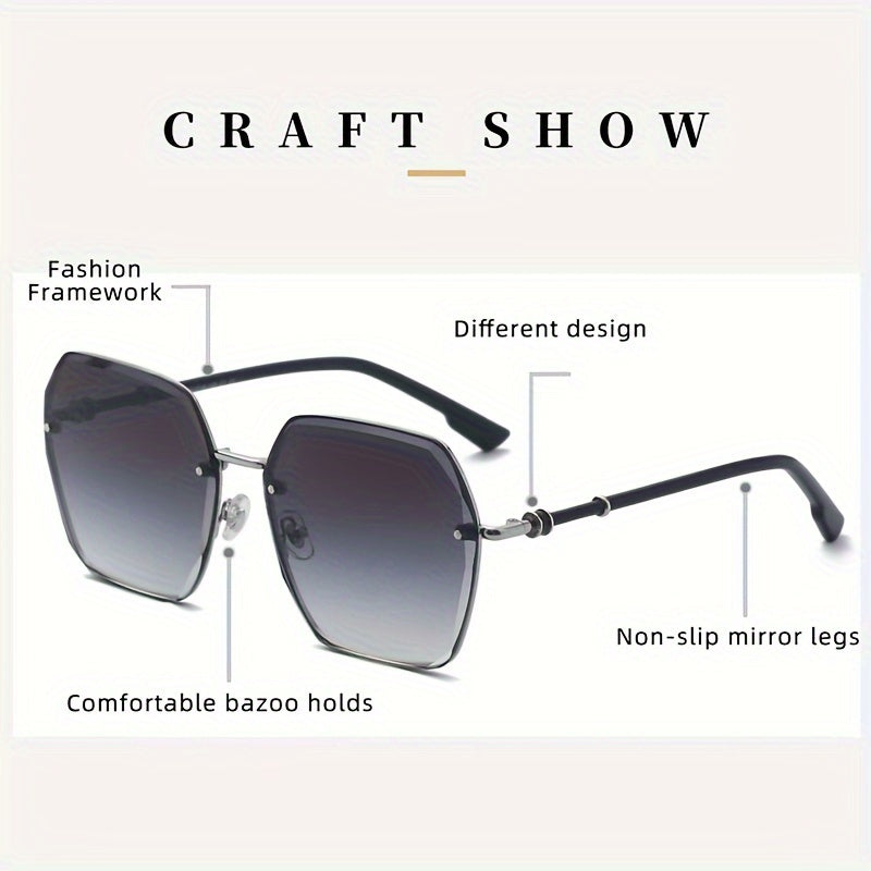 Yuqori darajadagi ayol modasi uchun kesilgan qirralarga ega, hashamatli ramkasiz Y2K poligon ziyofat ko'zoynaklari.
