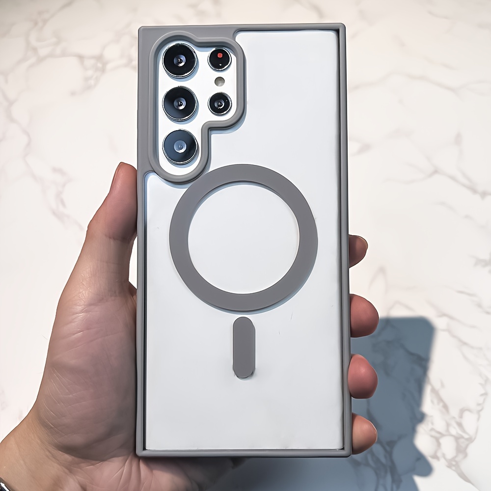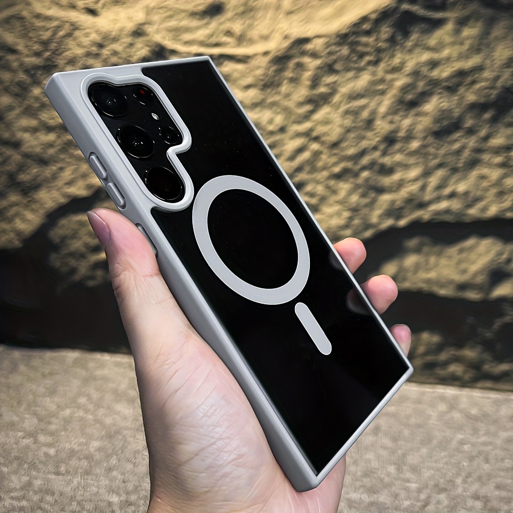 Samsung Galaxy S24, S23, S22, Plus, Ultra uchun hashamatli shaffof magnit simsiz zaryadlash zarbaga chidamli himoya qopqog'i - shaffof akril qoplama.