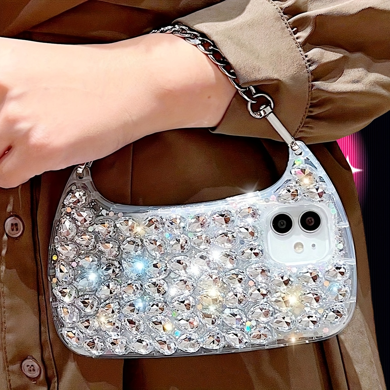 Turli iPhone modellari uchun shaffof himoya qopqog'i bilan hashamatli bilak zanjir sumkasi.