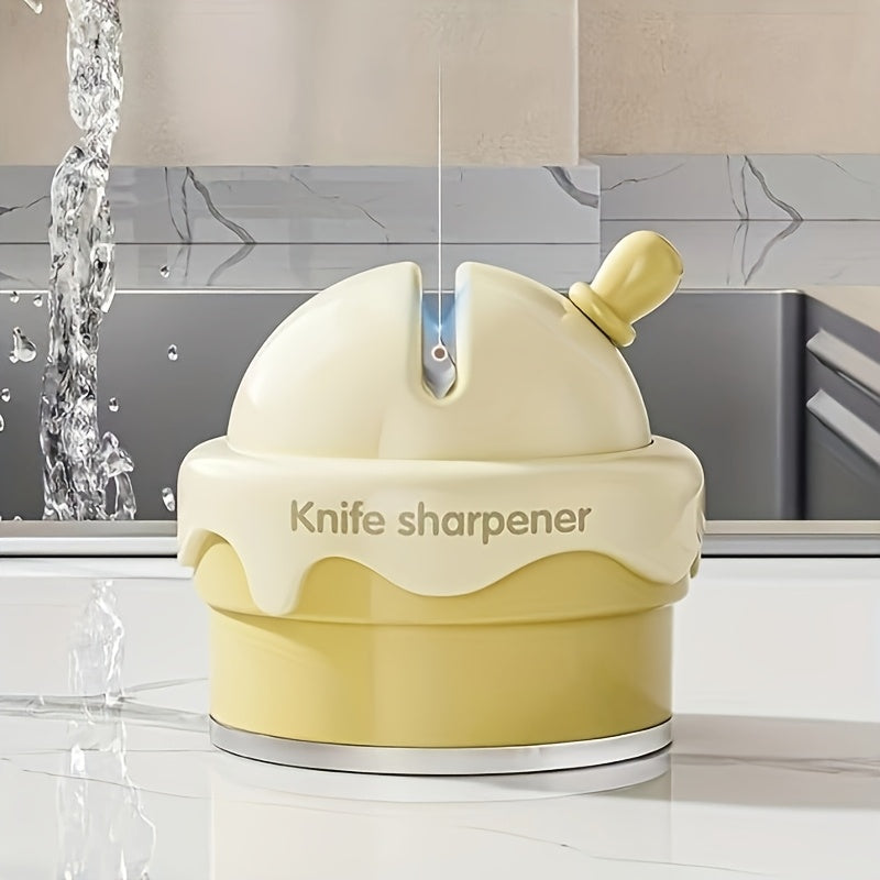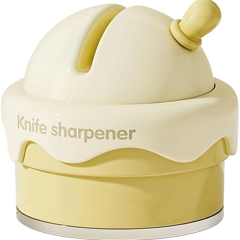 "O'yinchoq Muzqaymoq Koni Dizaynida Suv O'tkazmaydigan Asosli Qo'l Bilan Pichoqni O'tkazish Qurilmasi - Oshxonada Pichoqlarni O'tkazish uchun Tez, Xavfsiz va Qiziqarli Gadjet. Keramika Materialidan Yasalgan, Ichki Foydalanish Uchun Mukammal."