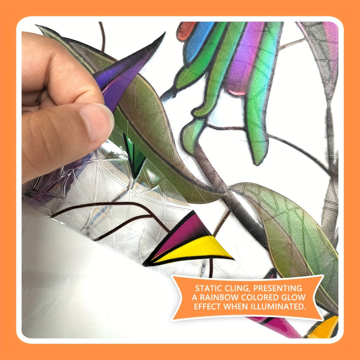 Rang-barang qush va o'simliklar quyosh nuri deraza dekali 45.72cm x 99.06cm qayta ishlatiladigan PVC