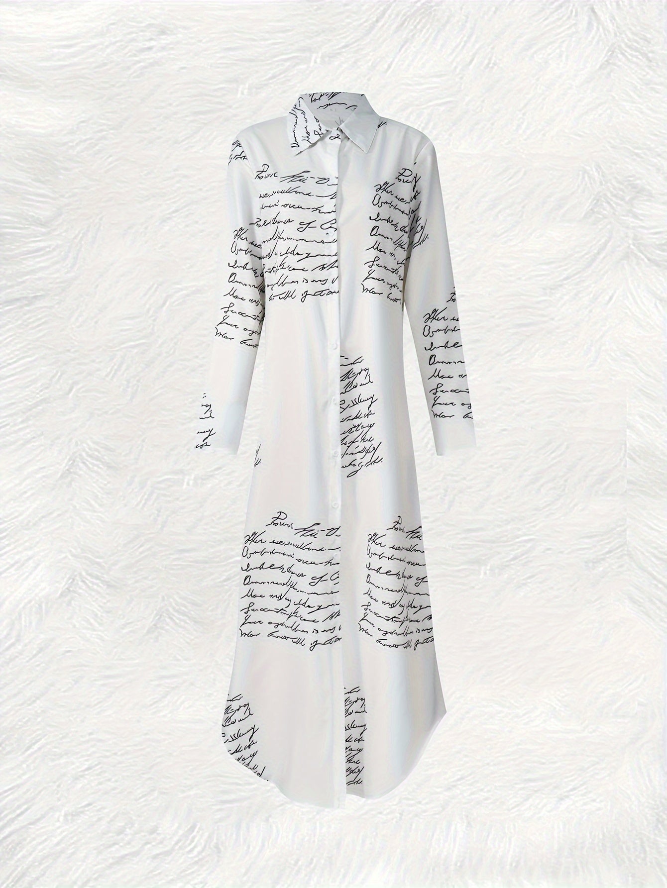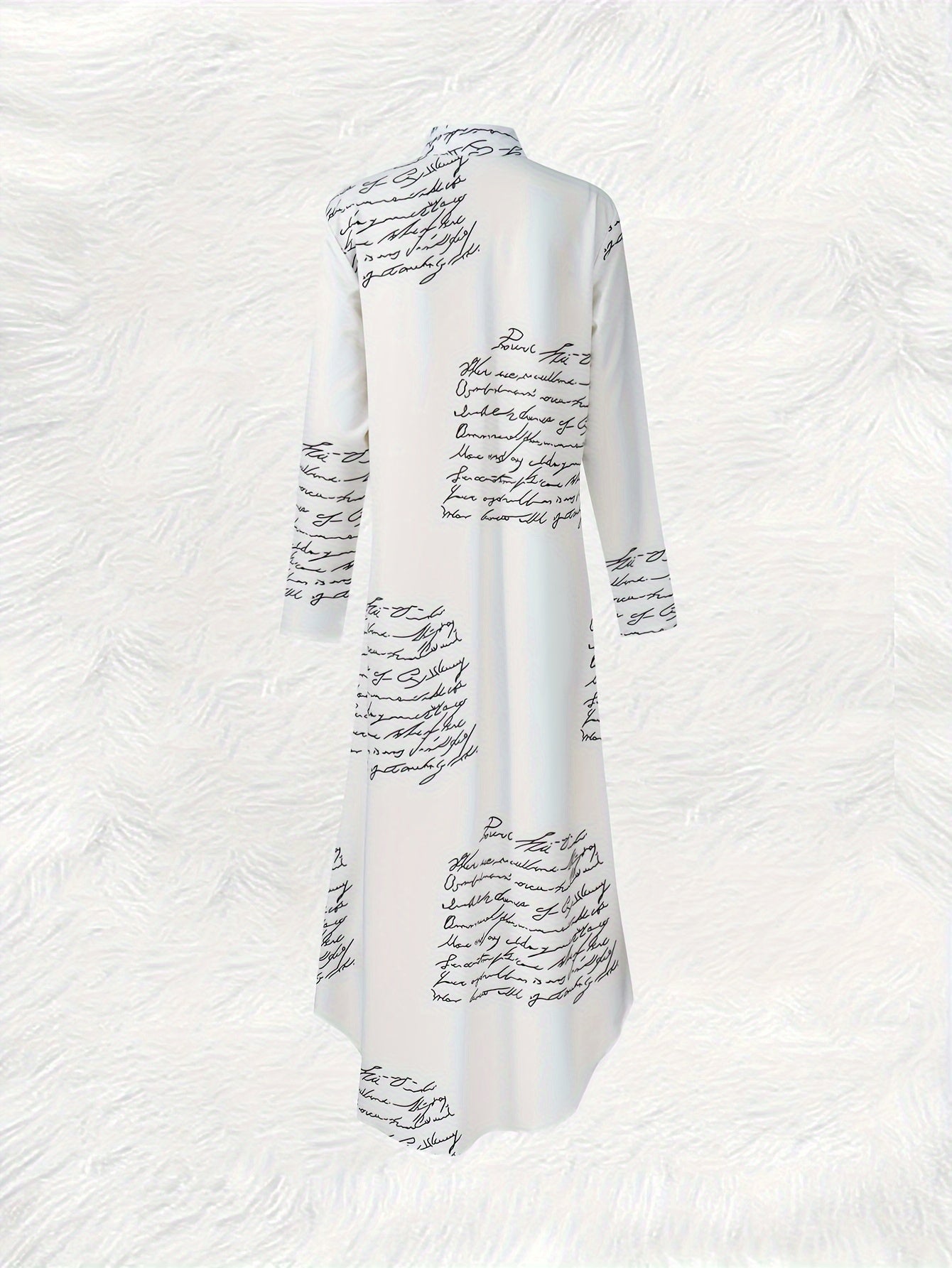 Yoz va kuz ta'til uslubi uchun harf bosma, tugmachali old qismi va uzun yenglari bo'lgan maksi ko'ylak.