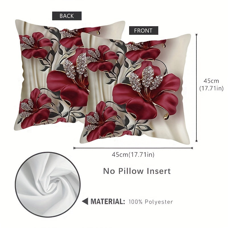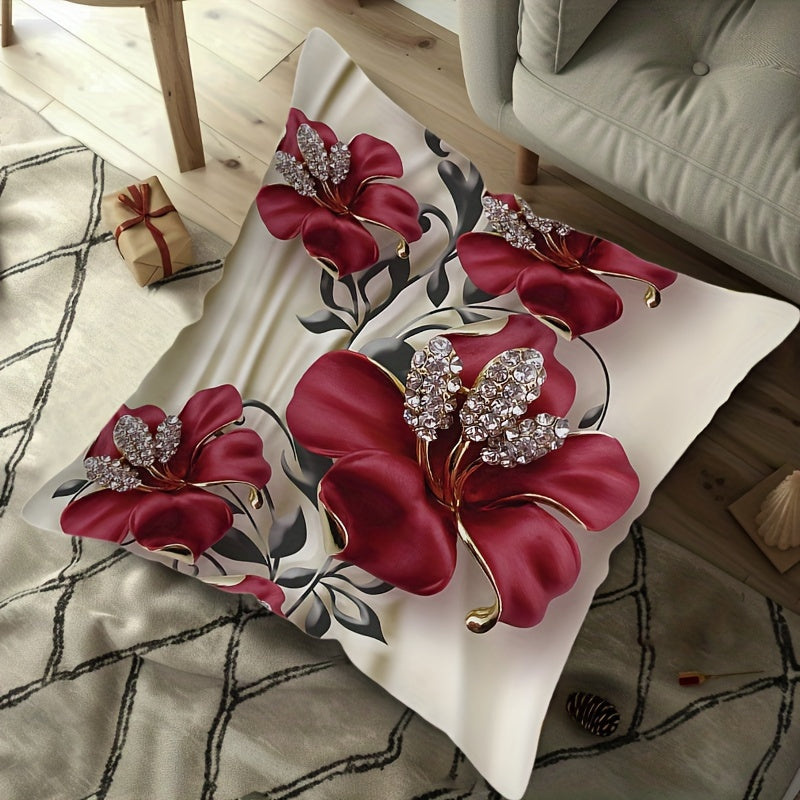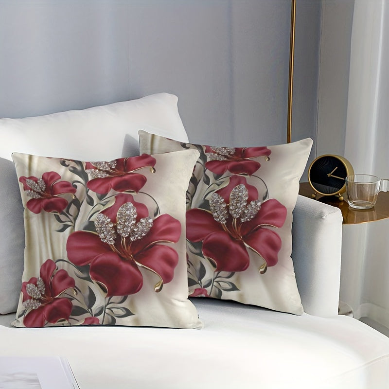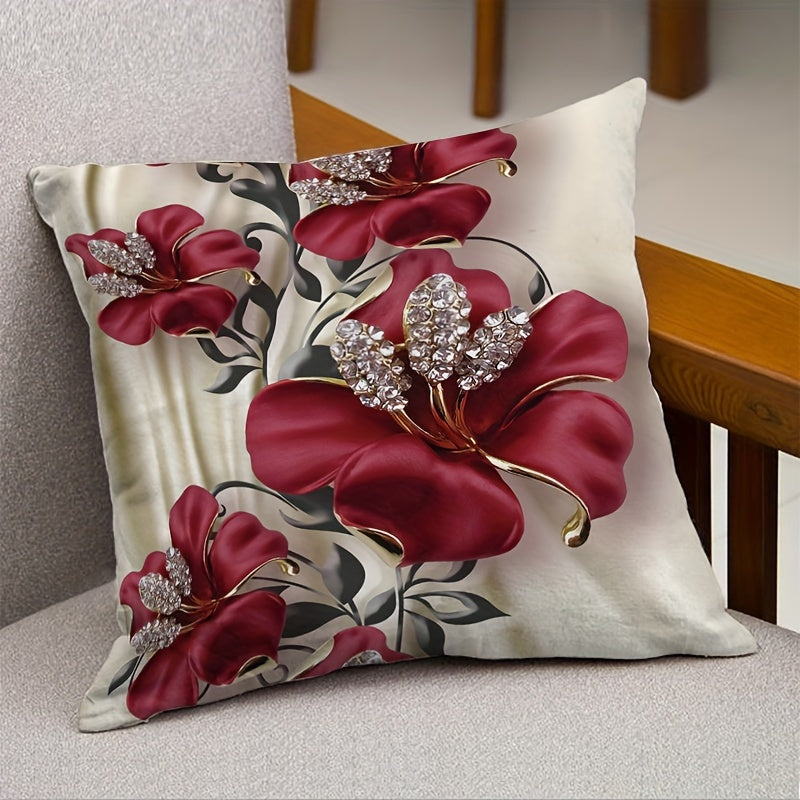 Zamonaviy gullar bilan bezatilgan yostiq qopqog'i 44.96x44.96 sm, ikki tomonlama zippersi bilan, yuviladigan, sovg'a uchun