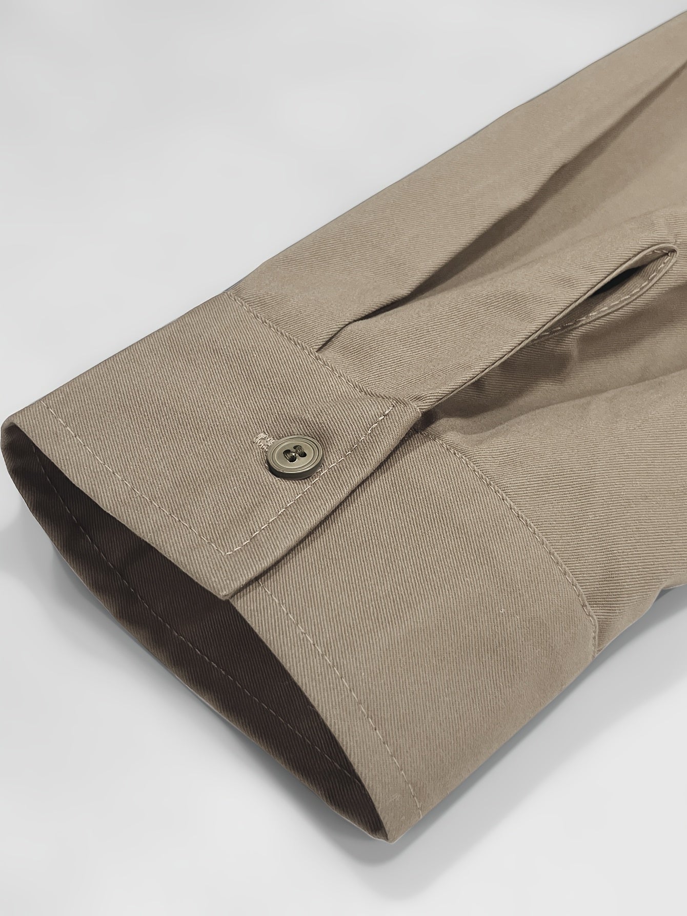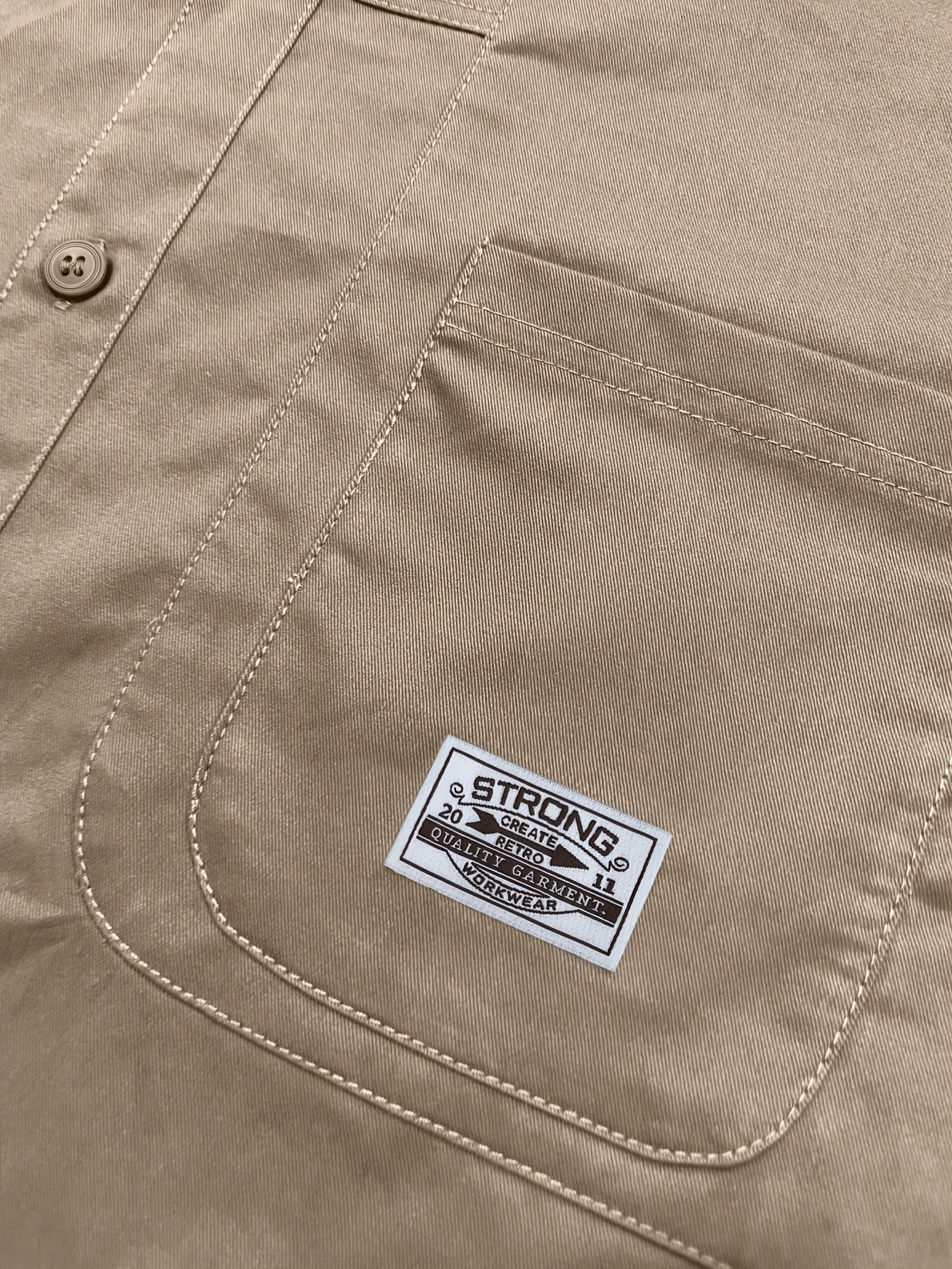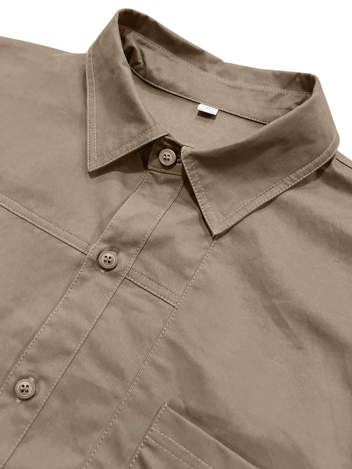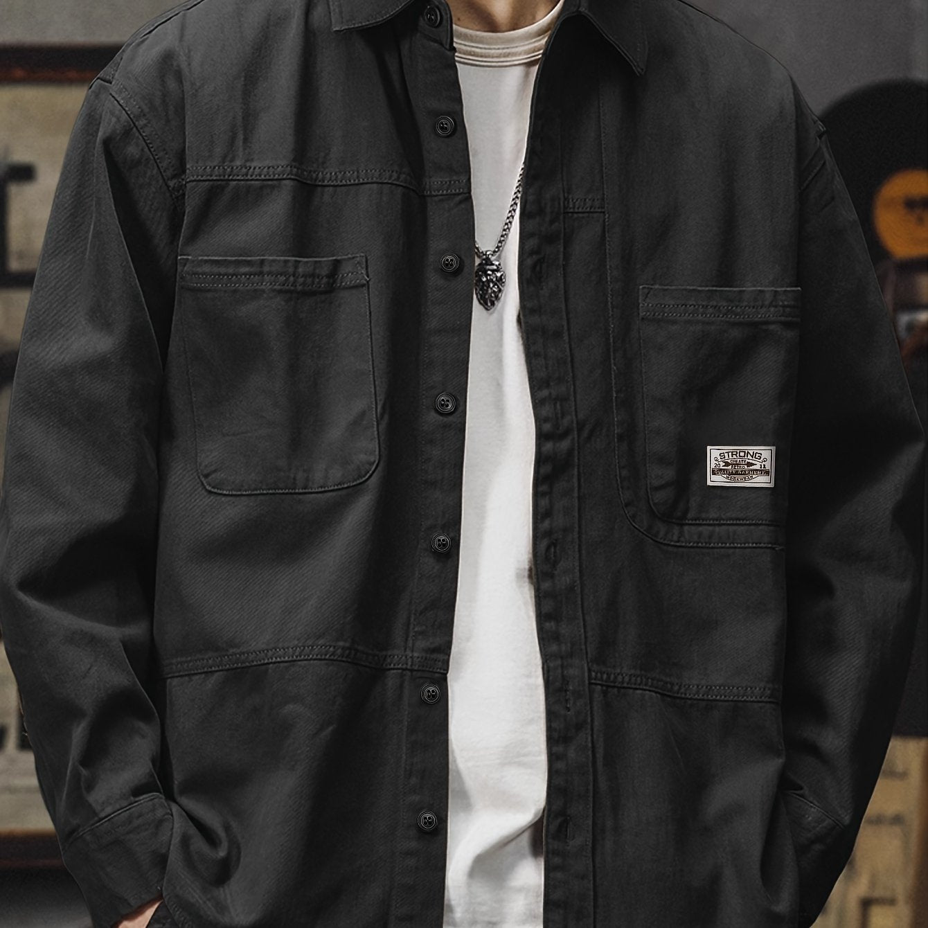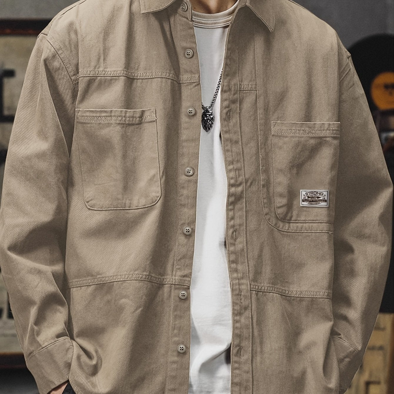 Erkaklar uchun 100% paxta kargo ko'ylagi, yorliq yamoqi bilan, bahor va kuz uchun mukammal, tasodifiy retro sovg'a