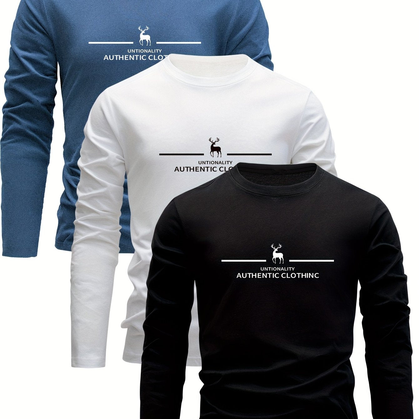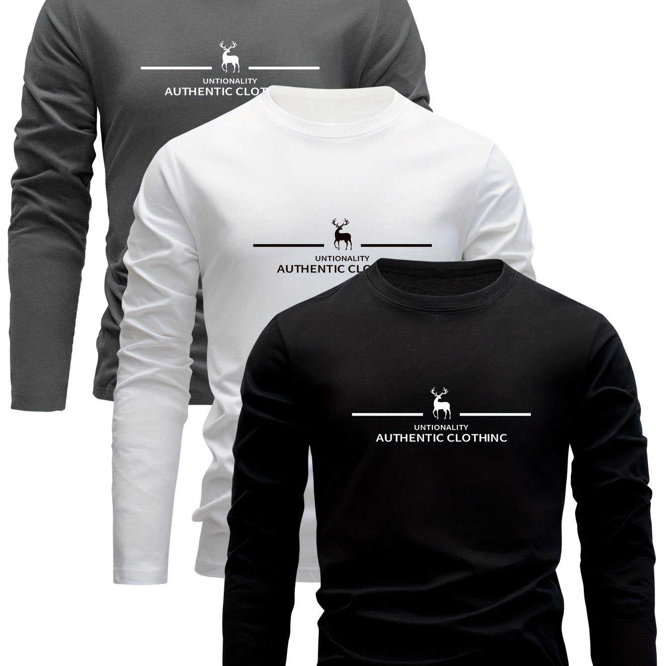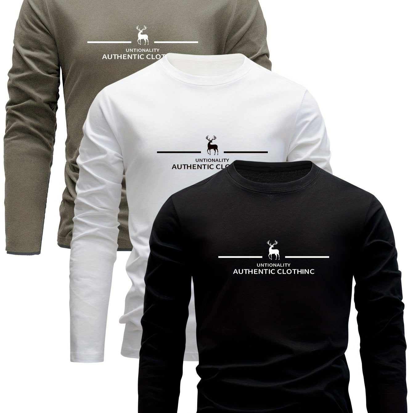 Erkaklar uchun 3 qismli paxta uzun qo'lqonli futbolkalar, kiyik bosma bilan, sport va ochiq havoda faoliyatlar uchun ideal.