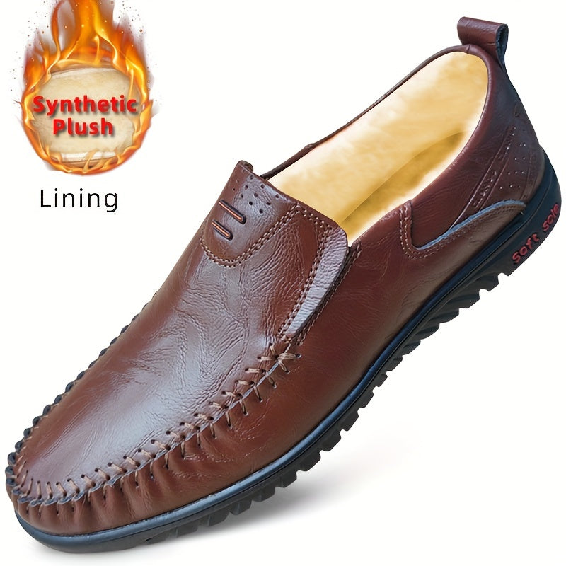 Erkaklar uchun qora loferlar, bo'linma charm yuqori qismi, yumshoq taglik va har mavsumga mos tasodifiy uslub. PU ichki astar va kauchuk taglik bilan jihozlangan.