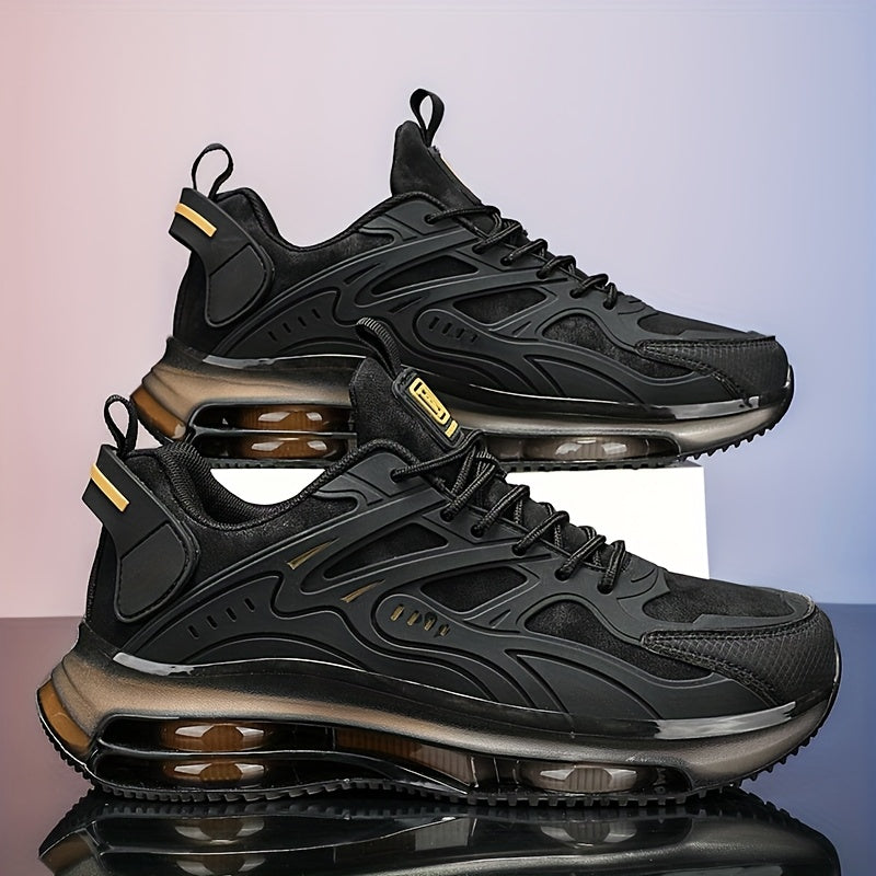 Erkaklar uchun qora yugurish krossovkalari - nafas oladigan, suv o'tkazmaydigan, zarbani yutuvchi, mustahkam kauchuk taglik - ochiq havoda faoliyatlar, yurish, yugurish uchun - bog'ichli, barcha mavsumlar uchun