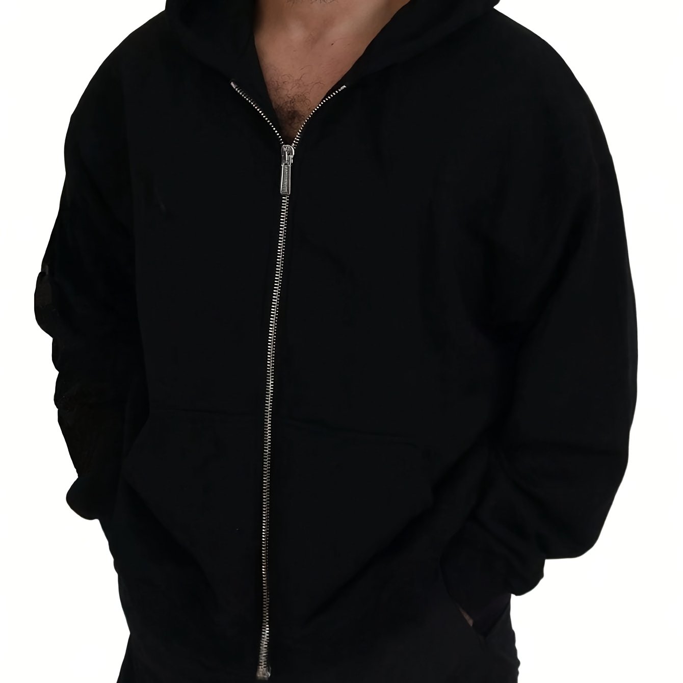 Erkaklar uchun tasodifiy qora fermuarlı xuddi polyesterdan tayyorlangan, ochiq havoda sport uchun ideal, mashinada yuvish mumkin, hip-hop marjoniga mos keladi, kattalar o'lchamida mavjud.