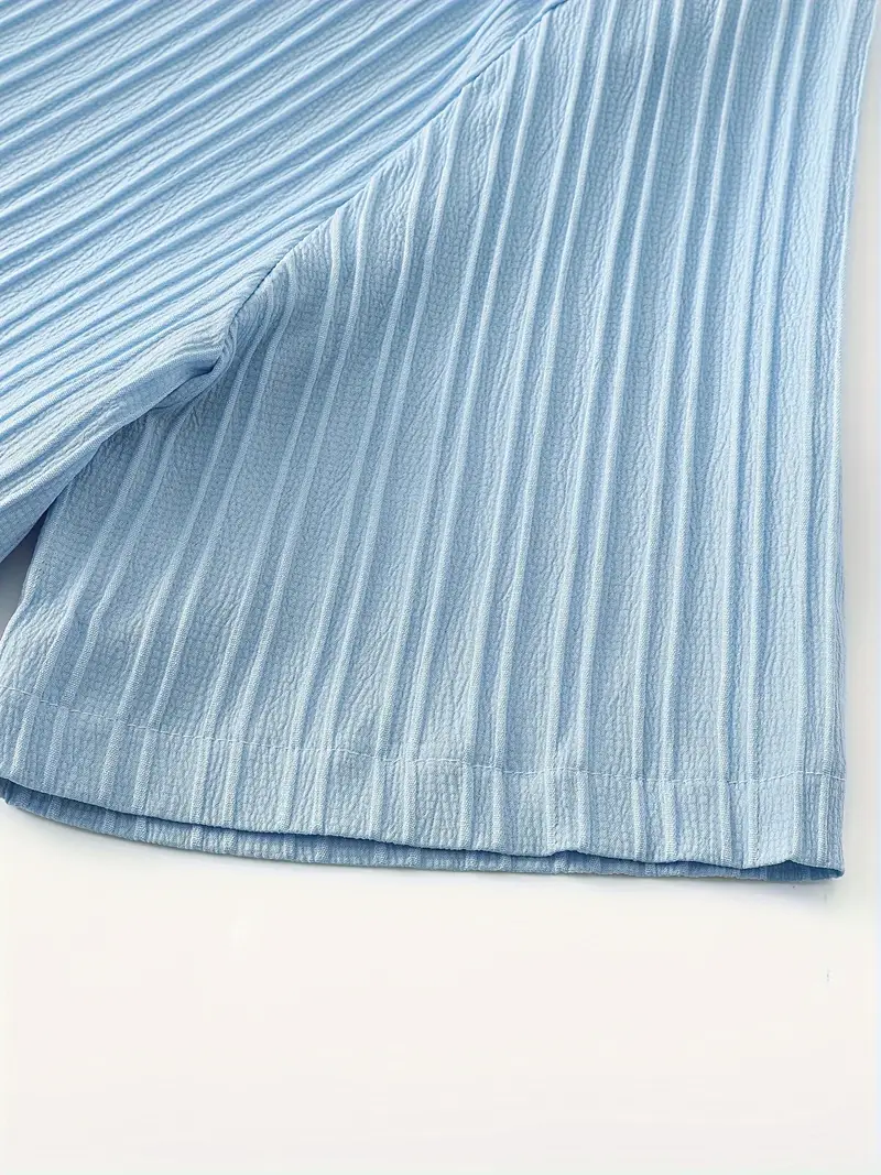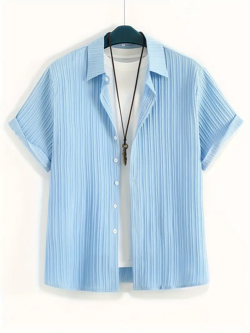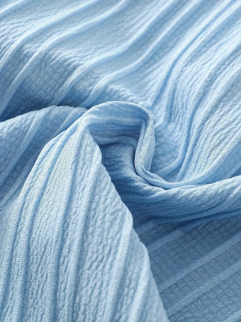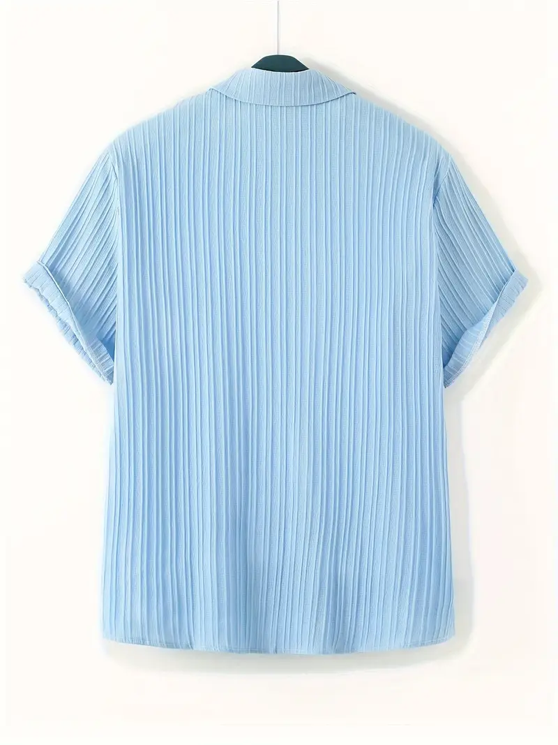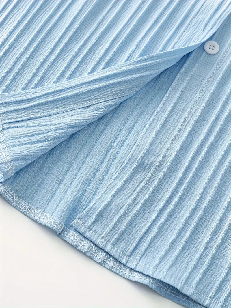 Yengil 95% polyester va 5% spandeks aralashmasidan tayyorlangan, yengil, tasodifiy chiziqli qisqa yengli ko'ylak, yengil yenglar, tugma tafsilotlari va o'smirlar va kattalar uchun oddiy moslik bilan. Ko'p maqsadli yozgi.