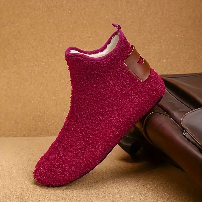 Erkaklar uchun ichki slip-on bo'yinli uy poyabzallari, sirpanishga qarshi kauchuk taglik, qulay kuz/qish uchun iliq to'quv astar.