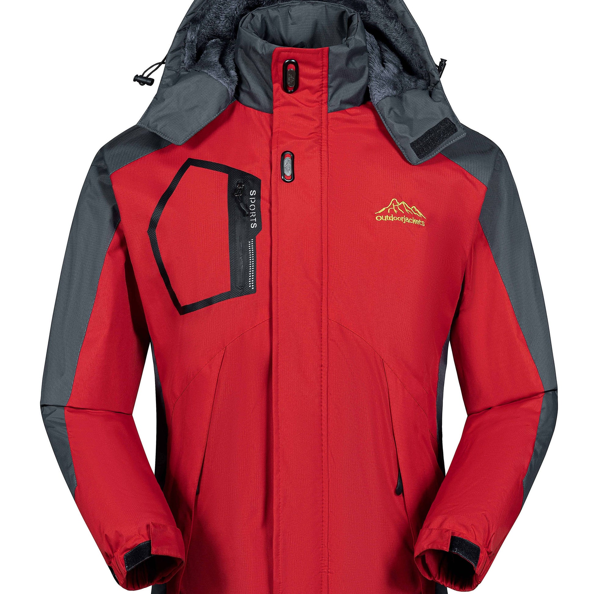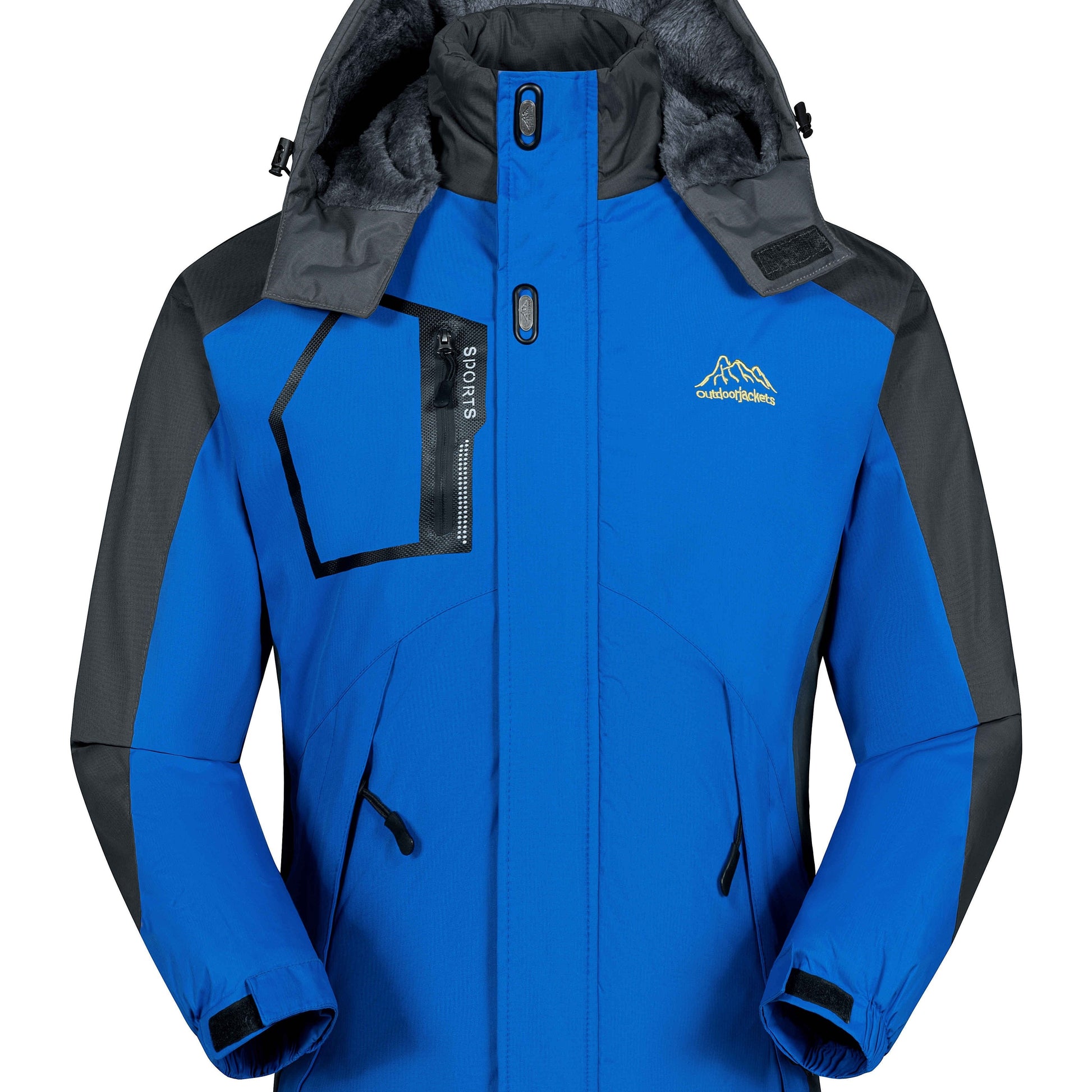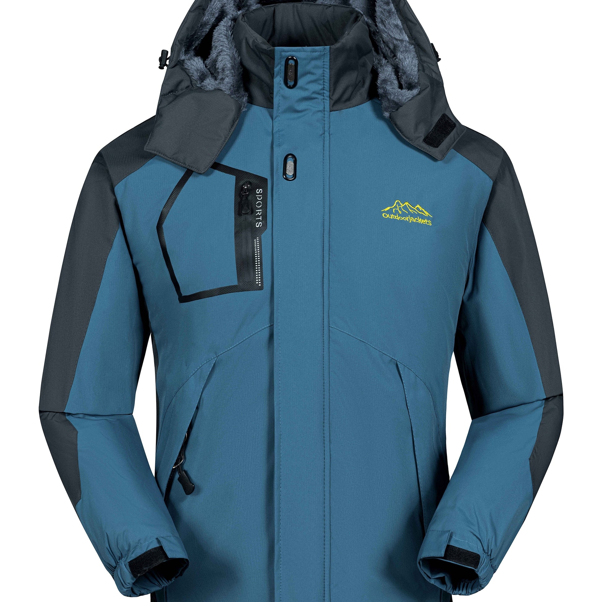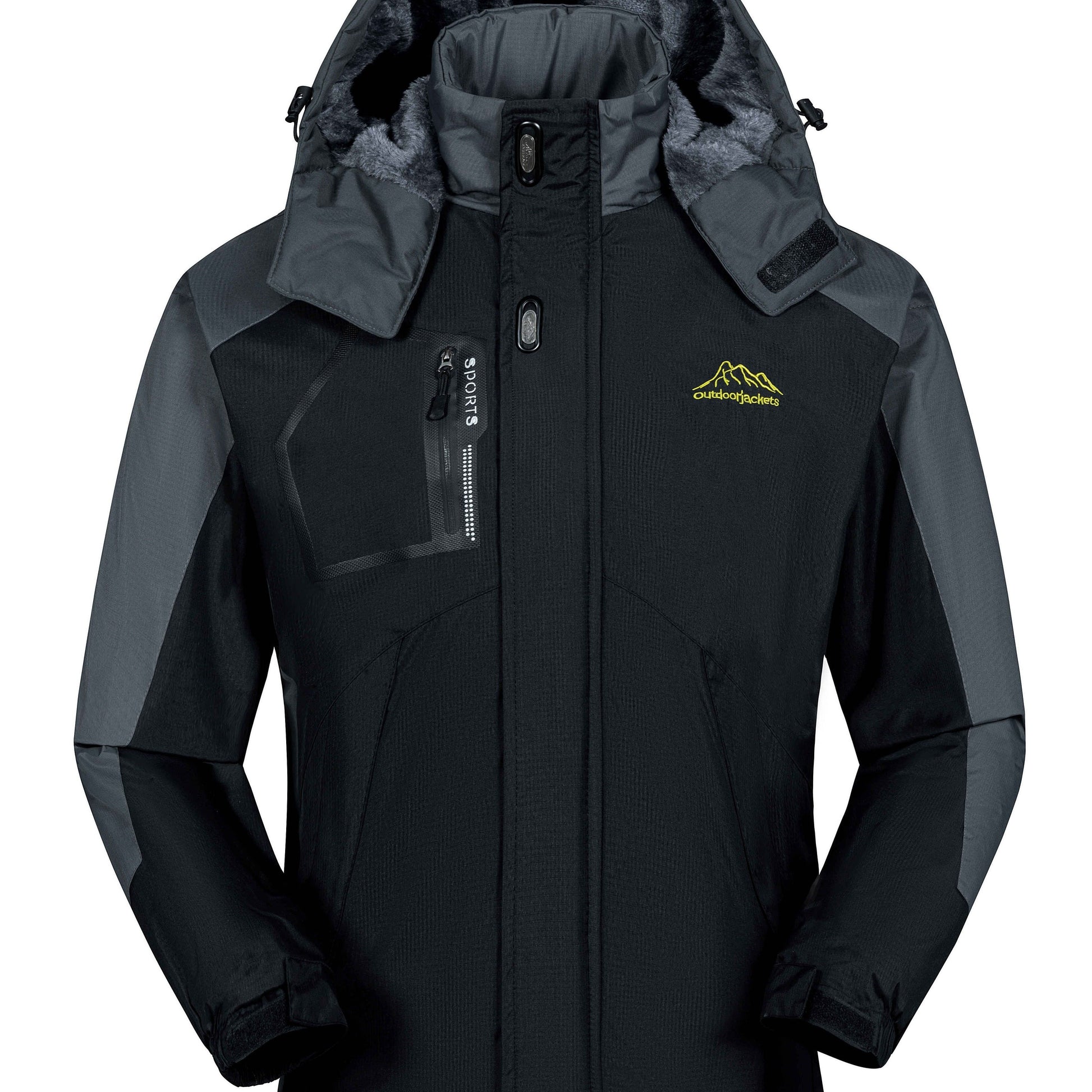 Erkaklar uchun izolyatsiyalangan qishki shamol o'tkazmaydigan kurtka - Fleece bilan qoplangan, suv o'tkazmaydigan va shamol o'tkazmaydigan, kapüşonli, zipli cho'ntaklar bilan, qora va kulrang, sovuq ob-havo uchun tasodifiy uslub.